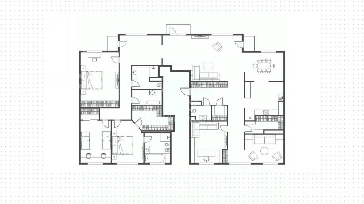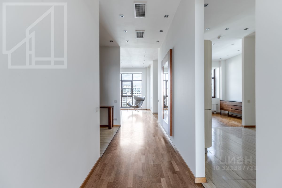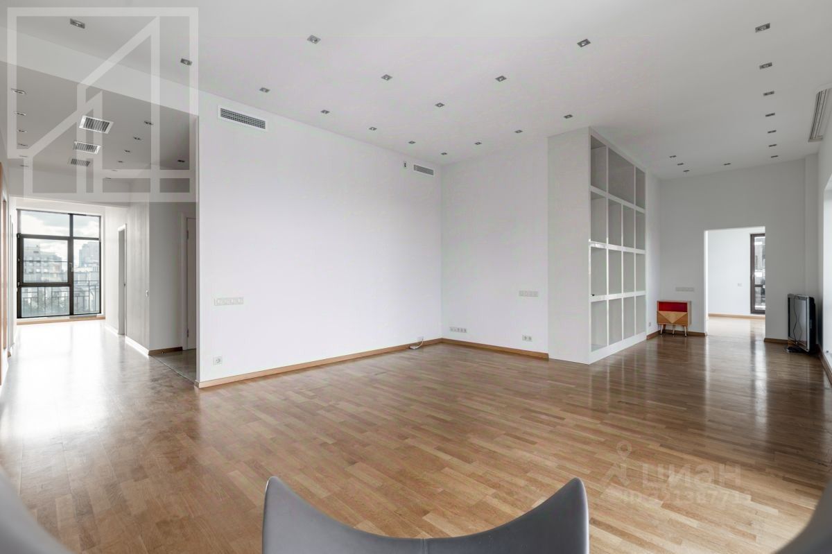 Планировка: большая кухня-гостиная с обеденной зоной, три спальни, игровая комната, кабинет, две ванные комнаты, гостевой санузел, две гардеробные комнаты, два балкона, постирочная. Выполнена современная отделка в лаконичных светлых тонах, панорамные окна в пол, высокие потолки. Квартира укомплектована мебелью и бытовой техникой, мебель могут вывезти или довезти. Установлена собственная приточно-вытяжная система вентиляции.