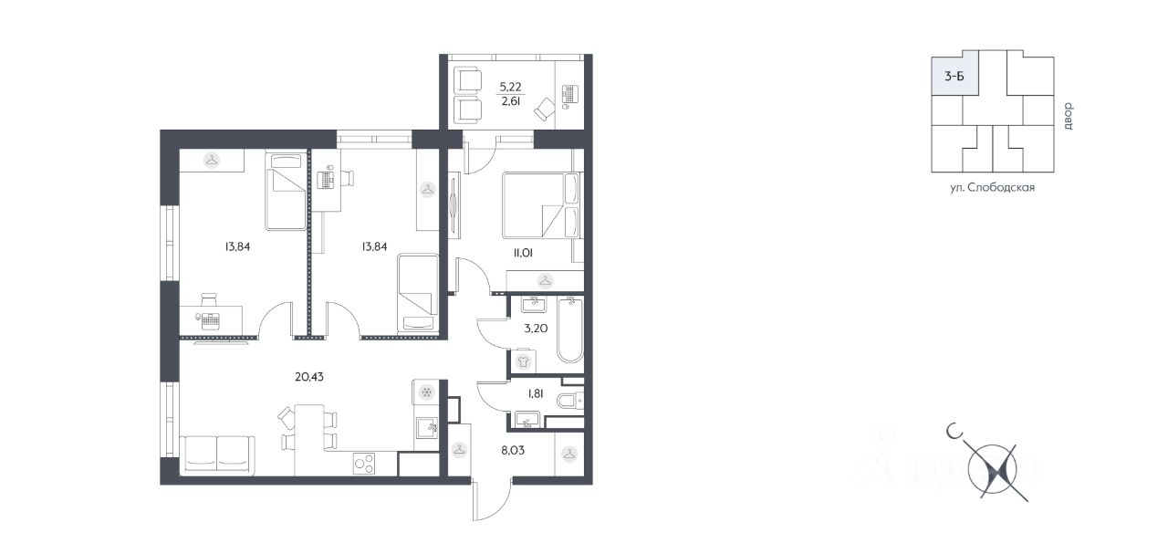 продам 3-к, Слободская15 087 380 ₽