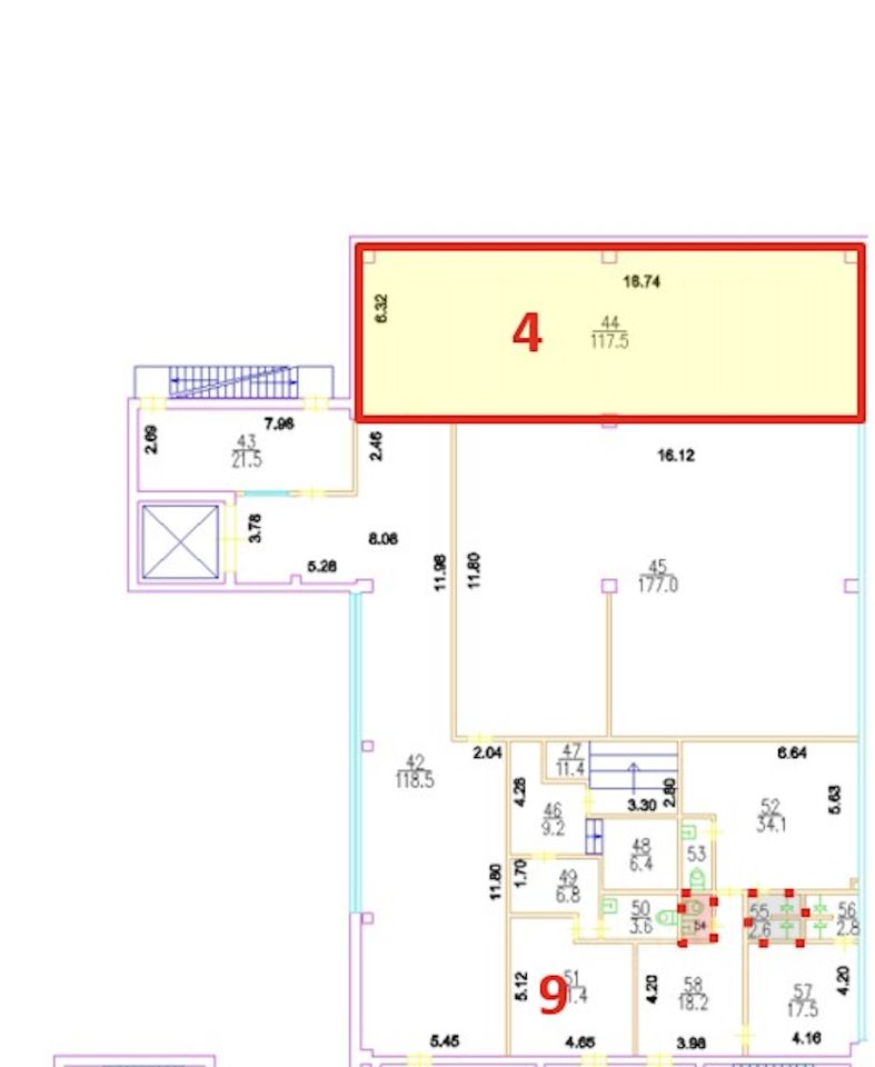 Помещение 117,5кв.м. 3 этаж, грузовой лифт, потолки 4 метра.