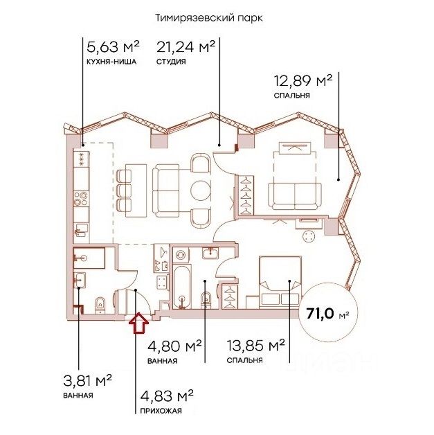 В шаговой доступности метро Дмитровская, Тимирязевский парк, дизайн-завод Флакон, и т.д.