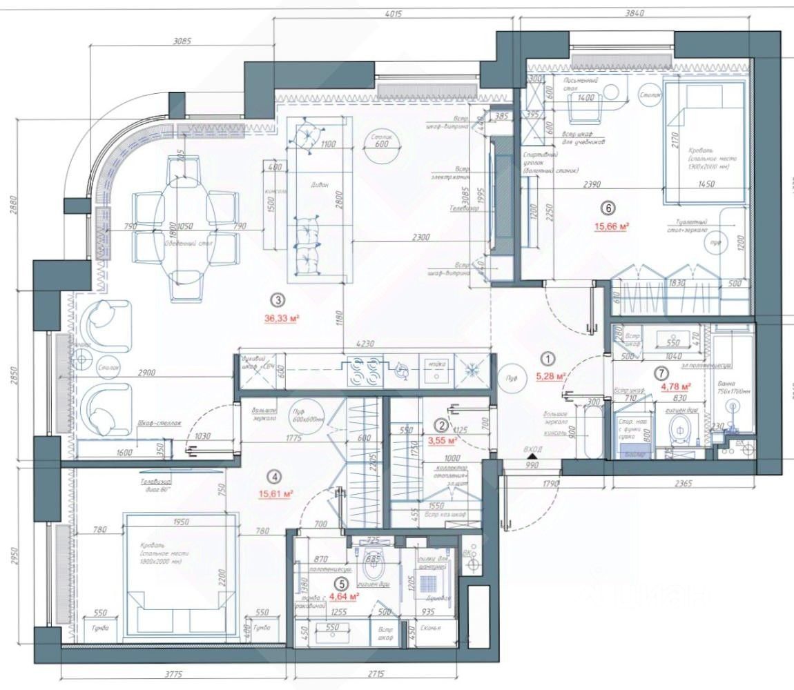 В продажу предлагается прекрасная квартира в ЖК бизнес-класса ''Павелецкая Сити'' с идеальной планировкой, в которой предусмотрено: