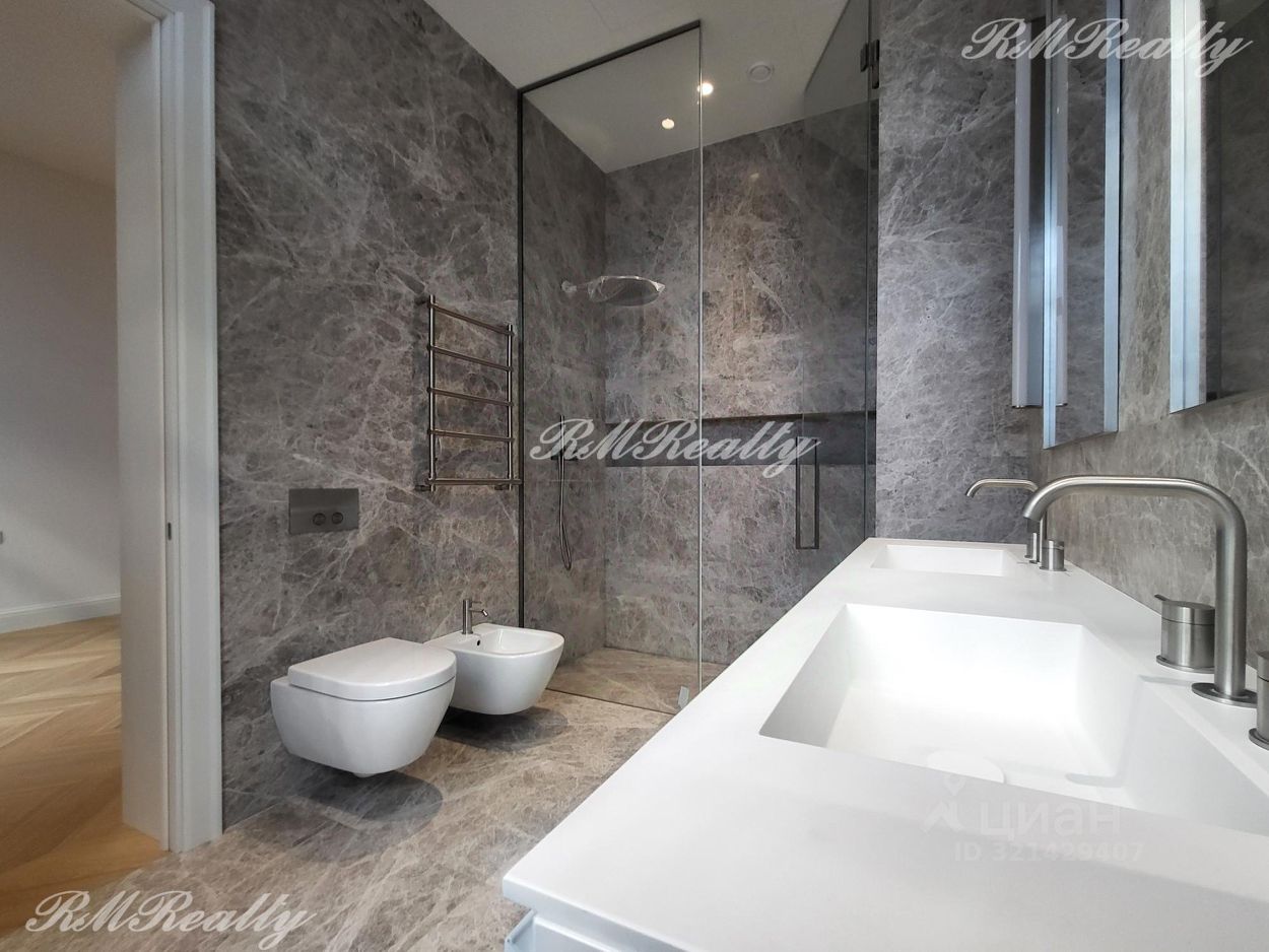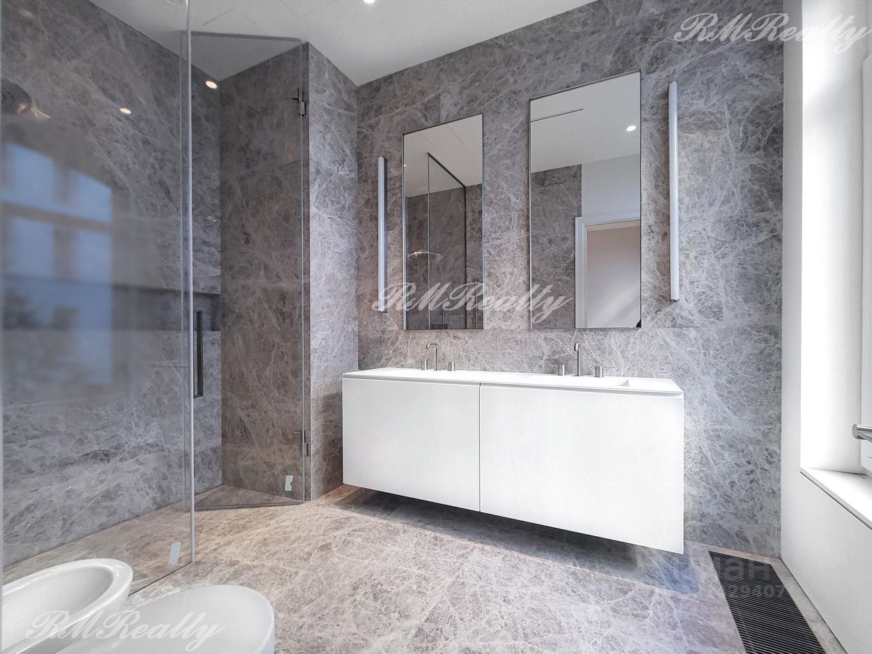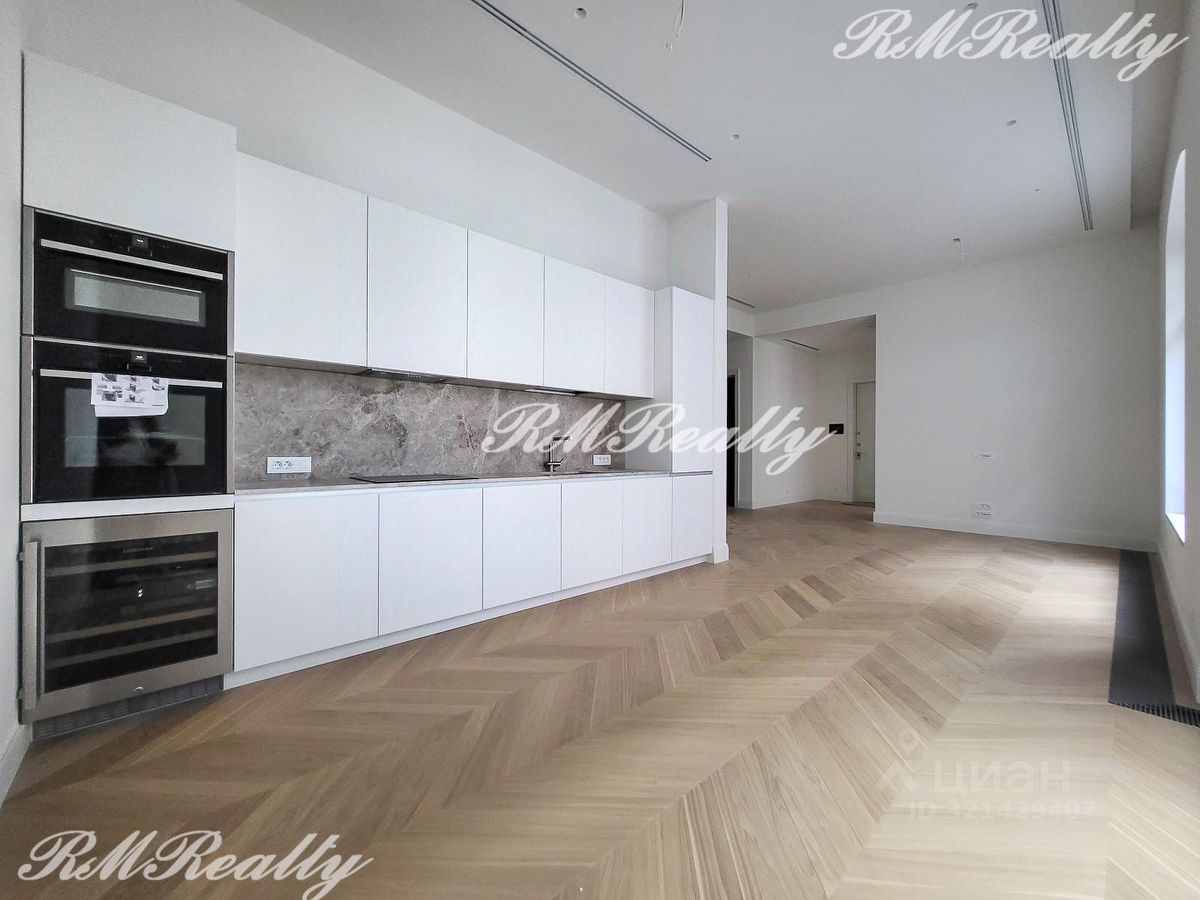 Отделка включает полностью оборудованную кухню и ванные комнаты. Полы - массивная доска из натурального дуба, кухня - CESAR CUCINE, встроенная бытовая техника Neff, ванная - отделка из натурального мрамора LUNA GREY , смесители - GESSI, сантехника - Villeroy&Boch.