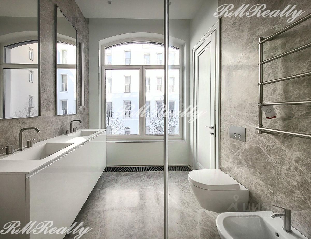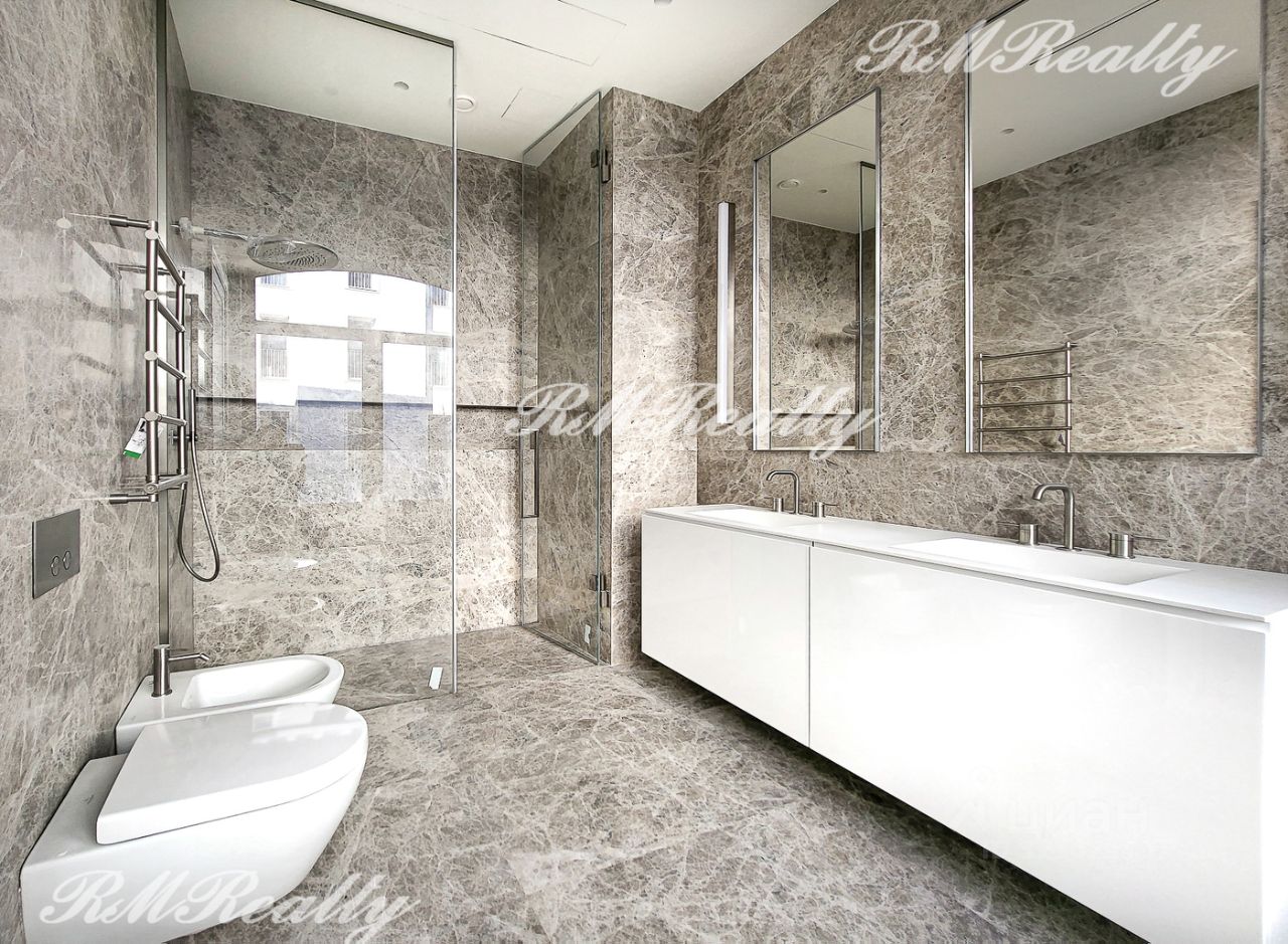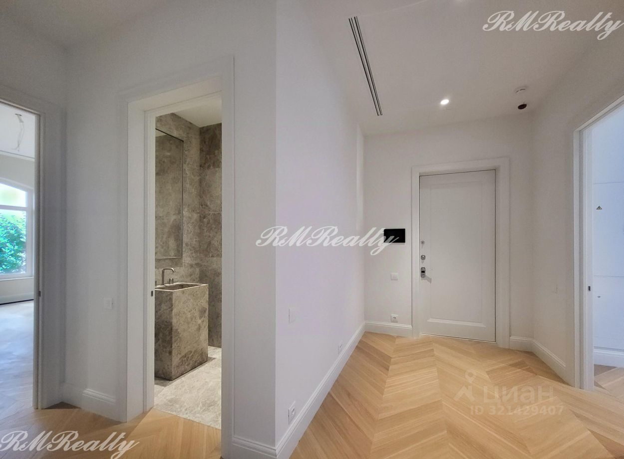 Отделка включает полностью оборудованную кухню и ванные комнаты. Полы - массивная доска из натурального дуба, кухня - CESAR CUCINE, встроенная бытовая техника Neff, ванная - отделка из натурального мрамора LUNA GREY , смесители - GESSI, сантехника - Villeroy&Boch.