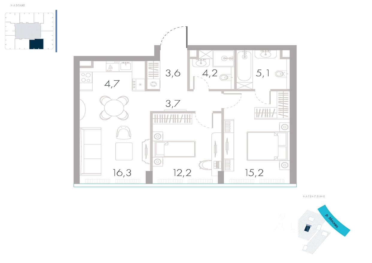 Расположение и Транспортная доступность: - На берегу Москвы-реки, напротив Москва-Сити - 600 метров до Кутузовского проспекта - Удобный съезд с ТТК - Прямой выезд на МКАД по Северному дублеру Кутузовского проспекта. - В пешей доступности 3 станции метро: Фили, Парк Победы, Кутузовская, а также станция МЦД Фили. Архитектура от именитого бюро ADM отличается уникальной пластикой фасадов - башни словно парят в воздухе, играя гранями как драгоценные камни. Жилой комплекс состоит из 5-ти небоскребов с home park на закрытой территории и внешней торговой галереей с открытым доступом.