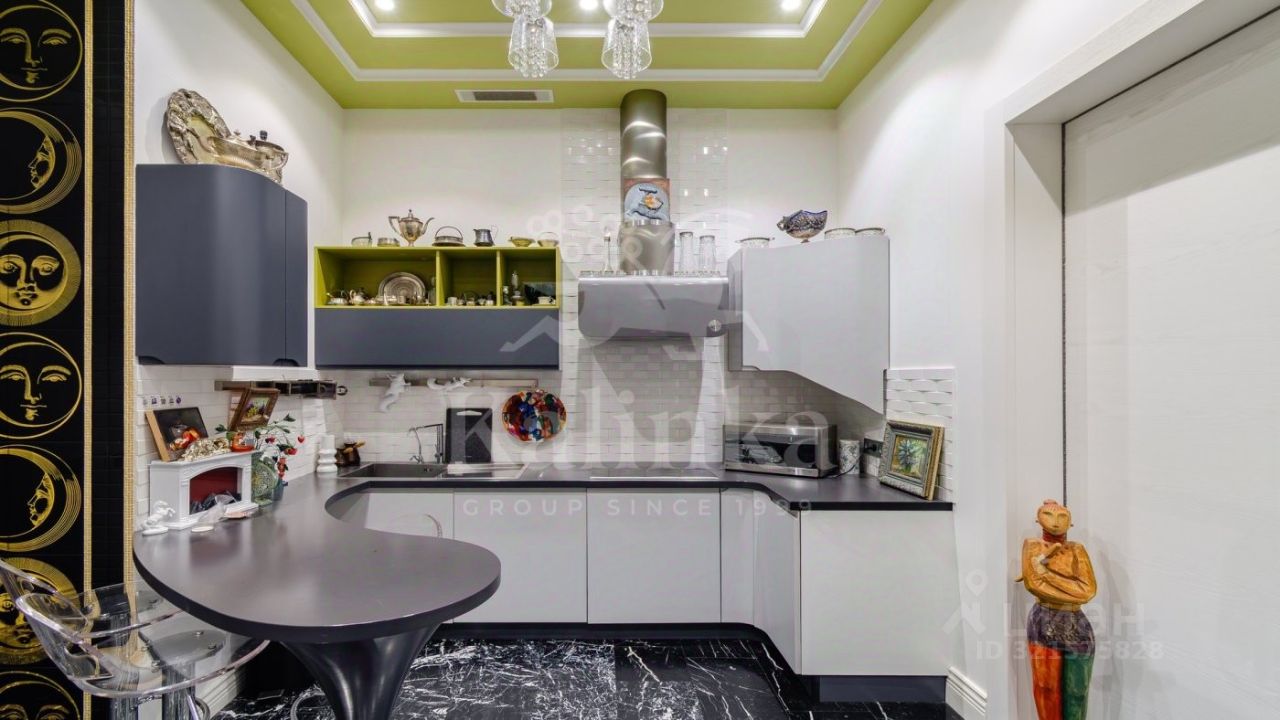 Планировка: кухня, зона отдыха с обеденной группой, мастер-спальня с ванной комнатой с двумя душевыми, джакузи и выходом на террасу, гардеробная, гостевой санузел, постирочный блок.