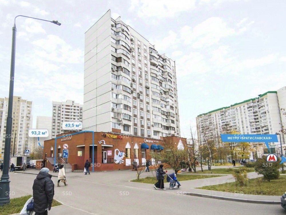 В продажу предлагается помещение свободного назначения у метро Братиславская по адресу: г. Москва, ЮВАО, район Марьино, Братиславская улица, д. 15, корп. 1. В шаговой доступности станция метро: Братиславская 5 минут. Первая линия домов. Крупный жилой массив. Сверхинтенсивный пешеходный и автомобильный трафик. Отличная пешеходная и транспортная доступность. Большой рекламный потенциал. Развитая инфраструктура. Место для размещения рекламы.