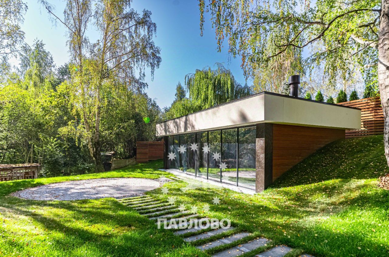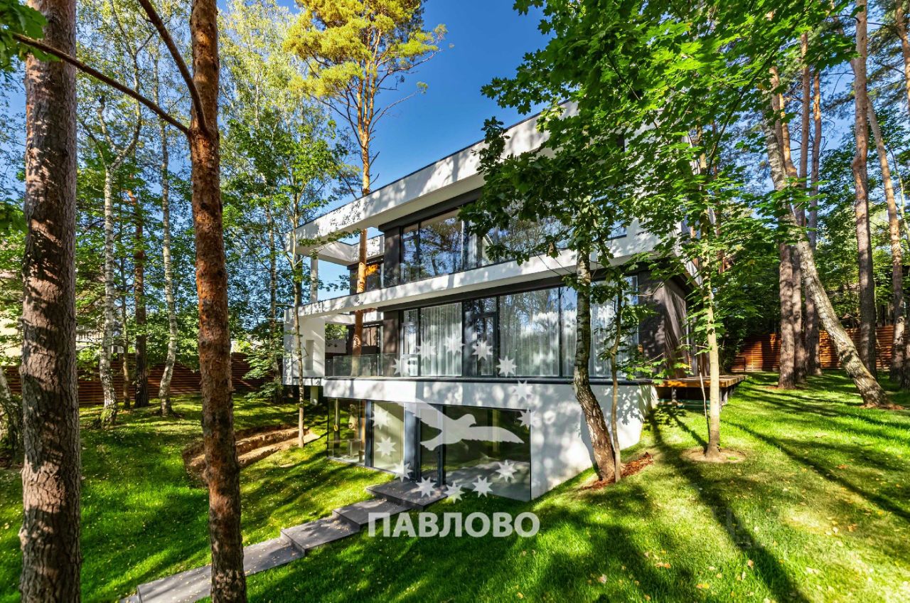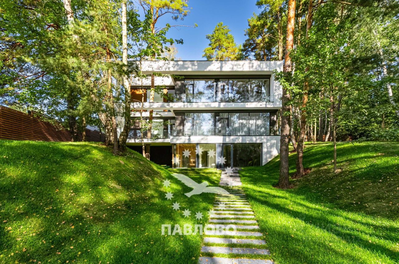 ЛОТ 88069 П ОТДЕЛ ПРОДАЖ ЗАСТРОЙЩИКА. Продажа загородного дома площадью 650 кв. м. Новорижское шоссе, 17 км. от МКАД. Коттеджный поселок Веледниково. Дом построен в 2 этажа. Этот впечатляющий современный коттедж, утопающий в высоких соснах, олицетворяет собой идеальный баланс между технологичным дизайном и естественной природной средой. Фасад дома выполнен в стиле минимализма с элементами хай-тека: сочетаются чёрный натуральный камень, текстурные панели тёплого дерева и белые геометрические рамки, подчёркивающие строгую архитектуру здания. Большие панорамные окна от пола до потолка не только наполняют дом светом, но и создают эффект полного погружения в окружающий лес.Чистые линии, контрастные материалы и открытые стеклянные фасады создают ощущение лёгкости и простора. Участок площадью 18 соток тщательно интегрирован в природный ландшафт: многолетние сосны были сохранены и стали частью общей концепции. На участке оборудована зона отдыха с круглым очагом и уютной уличной мебелью - идеальное место для вечерних встреч у костра. Ландшафтный дизайн включает холмистые участки, натуральные камни, декоративные кустарники и хвойные растения, органично вплетённые в лесной рельеф. Каменные дорожки ведут к дому и зонам отдыха, подчёркивая связь архитектуры с природой. Планировка: 1 этаж - кухня-столовая-гостиная с камином, с/у, кладовка, гардеробная, выход на террасу, 2 этаж - 3 большие спальни с с/у и гардеробными, Цоколь - 2 спальни персонала, кухня, с/у, постирочная , кладовка, спа-зона с кухней, хамам и сауна со стеклом в пол и видом на участок. Продажа напрямую от собственника.