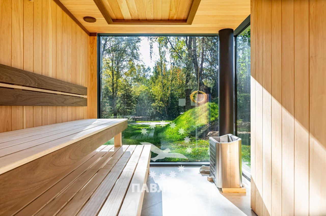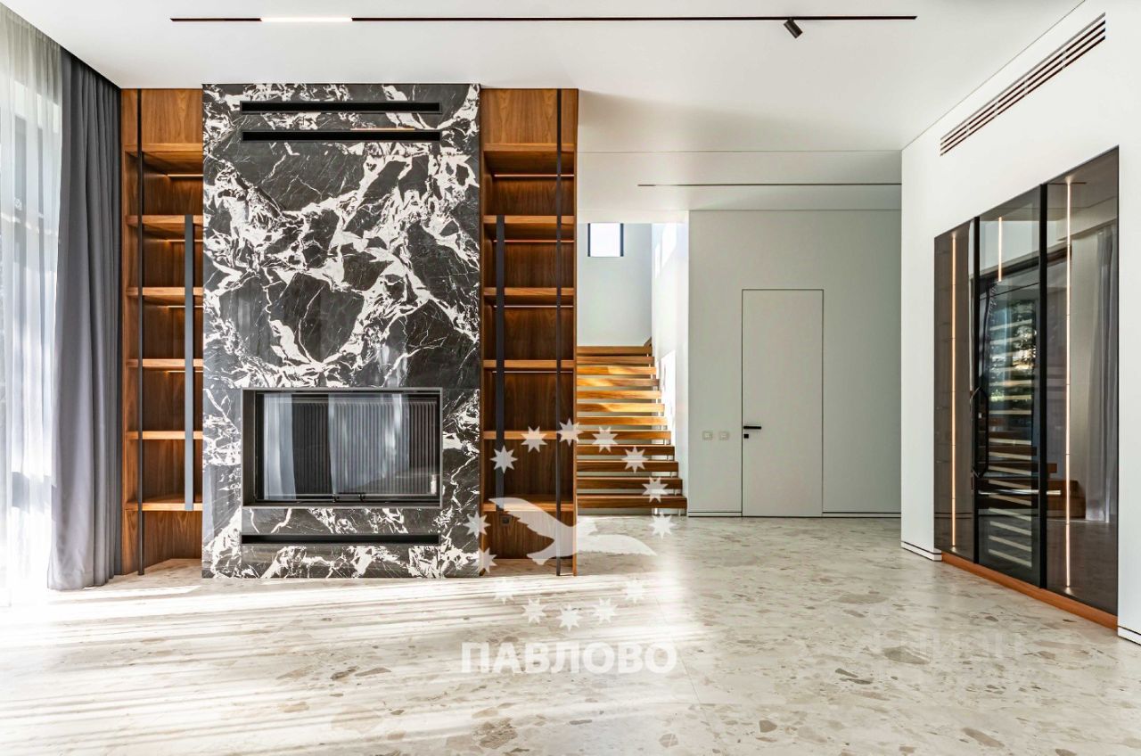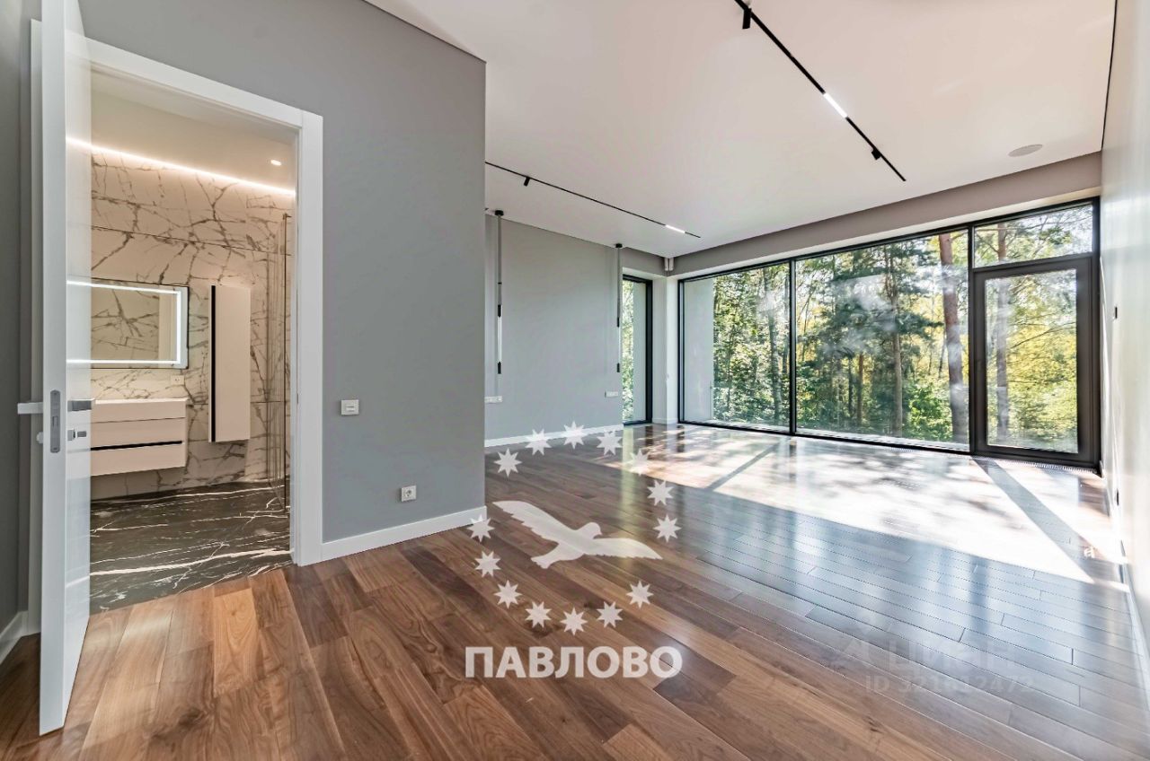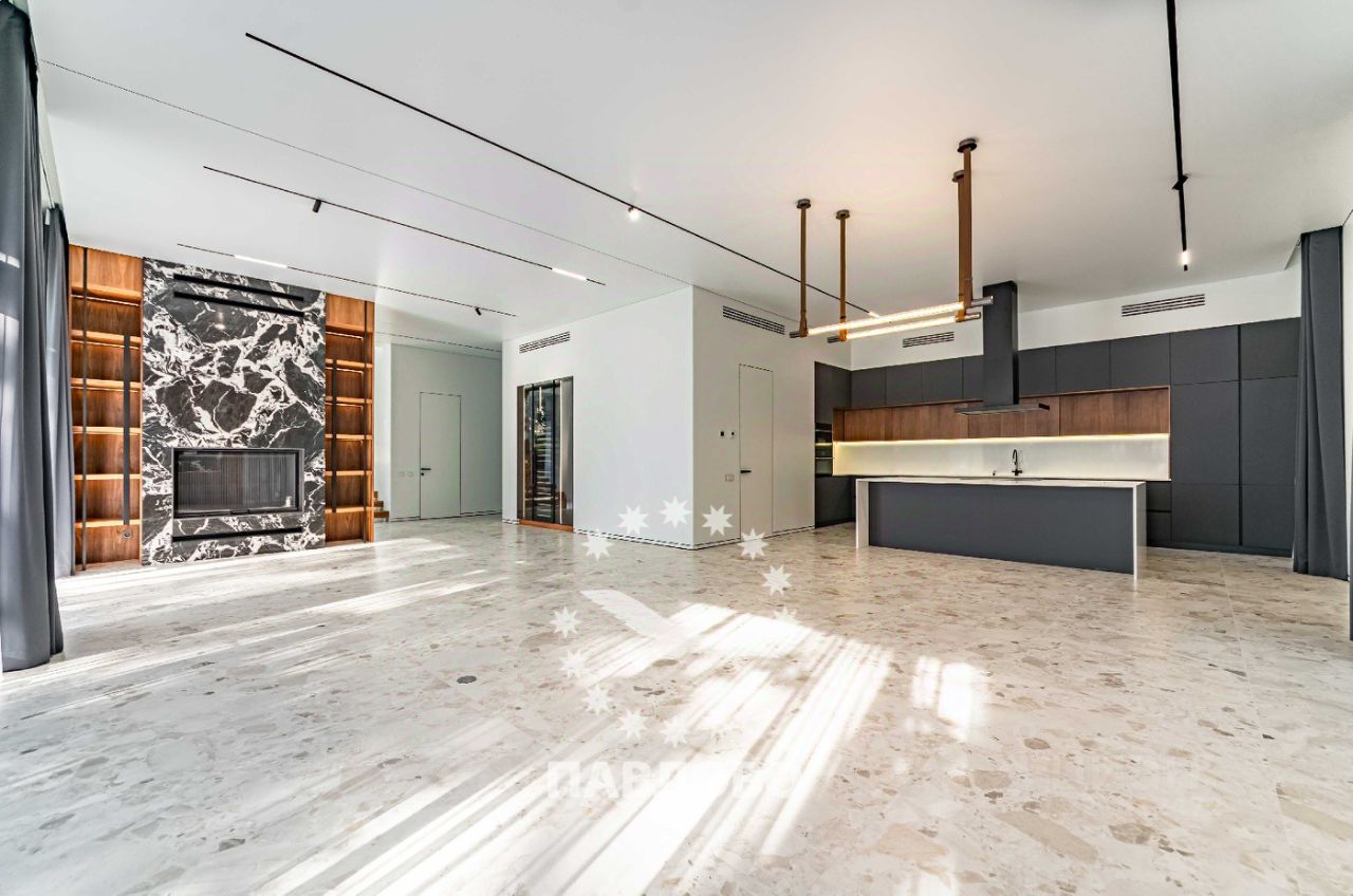 ЛОТ 88069 П ОТДЕЛ ПРОДАЖ ЗАСТРОЙЩИКА. Продажа загородного дома площадью 650 кв. м. Новорижское шоссе, 17 км. от МКАД. Коттеджный поселок Веледниково. Дом построен в 2 этажа. Этот впечатляющий современный коттедж, утопающий в высоких соснах, олицетворяет собой идеальный баланс между технологичным дизайном и естественной природной средой. Фасад дома выполнен в стиле минимализма с элементами хай-тека: сочетаются чёрный натуральный камень, текстурные панели тёплого дерева и белые геометрические рамки, подчёркивающие строгую архитектуру здания. Большие панорамные окна от пола до потолка не только наполняют дом светом, но и создают эффект полного погружения в окружающий лес.Чистые линии, контрастные материалы и открытые стеклянные фасады создают ощущение лёгкости и простора. Участок площадью 18 соток тщательно интегрирован в природный ландшафт: многолетние сосны были сохранены и стали частью общей концепции. На участке оборудована зона отдыха с круглым очагом и уютной уличной мебелью - идеальное место для вечерних встреч у костра. Ландшафтный дизайн включает холмистые участки, натуральные камни, декоративные кустарники и хвойные растения, органично вплетённые в лесной рельеф. Каменные дорожки ведут к дому и зонам отдыха, подчёркивая связь архитектуры с природой. Планировка: 1 этаж - кухня-столовая-гостиная с камином, с/у, кладовка, гардеробная, выход на террасу, 2 этаж - 3 большие спальни с с/у и гардеробными, Цоколь - 2 спальни персонала, кухня, с/у, постирочная , кладовка, спа-зона с кухней, хамам и сауна со стеклом в пол и видом на участок. Продажа напрямую от собственника.