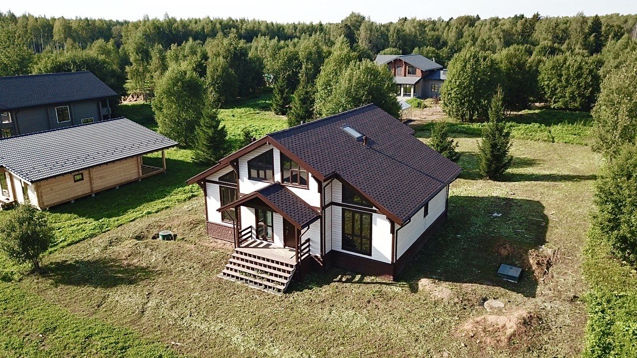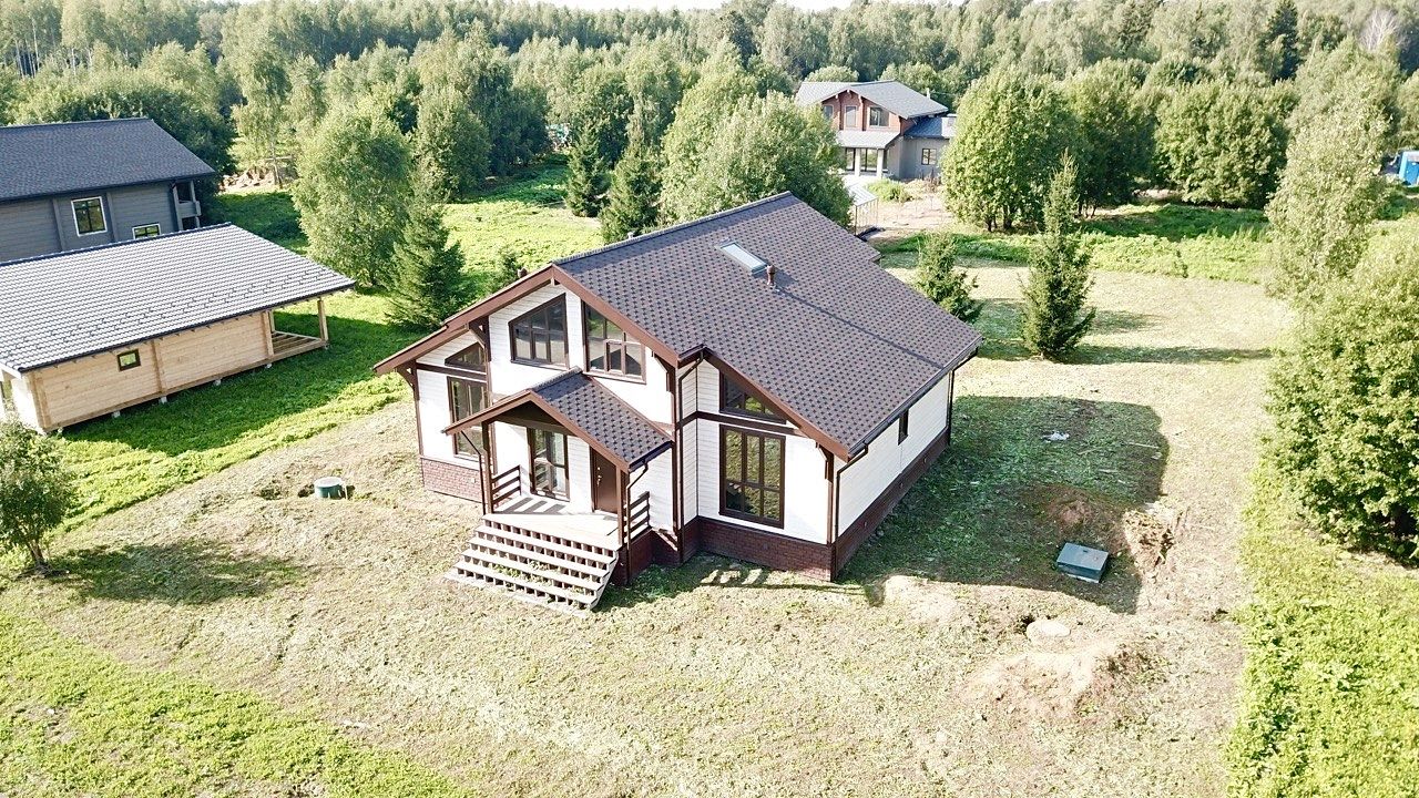 Просторный дом площадью 160,5 м² расположен в элитном коттеджном посёлке Ларсен Парк. Дом полностью готов для круглогодичного проживания.