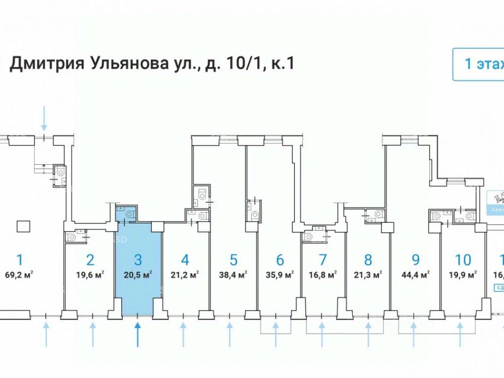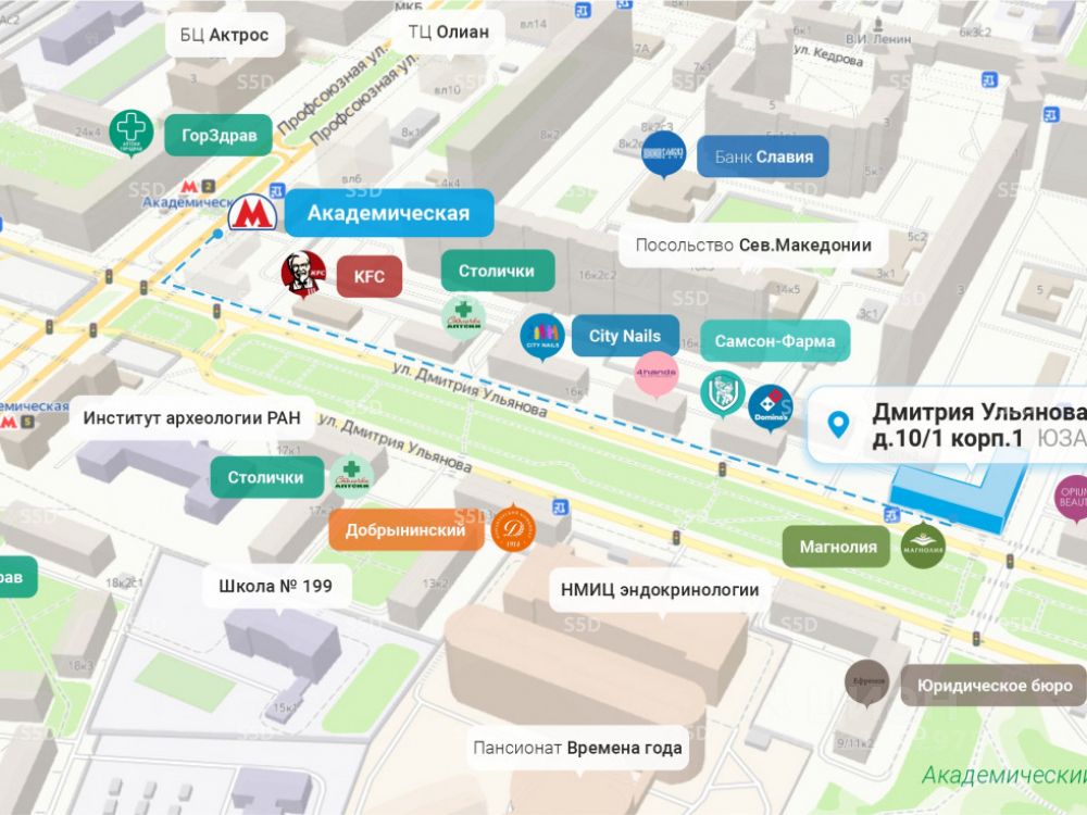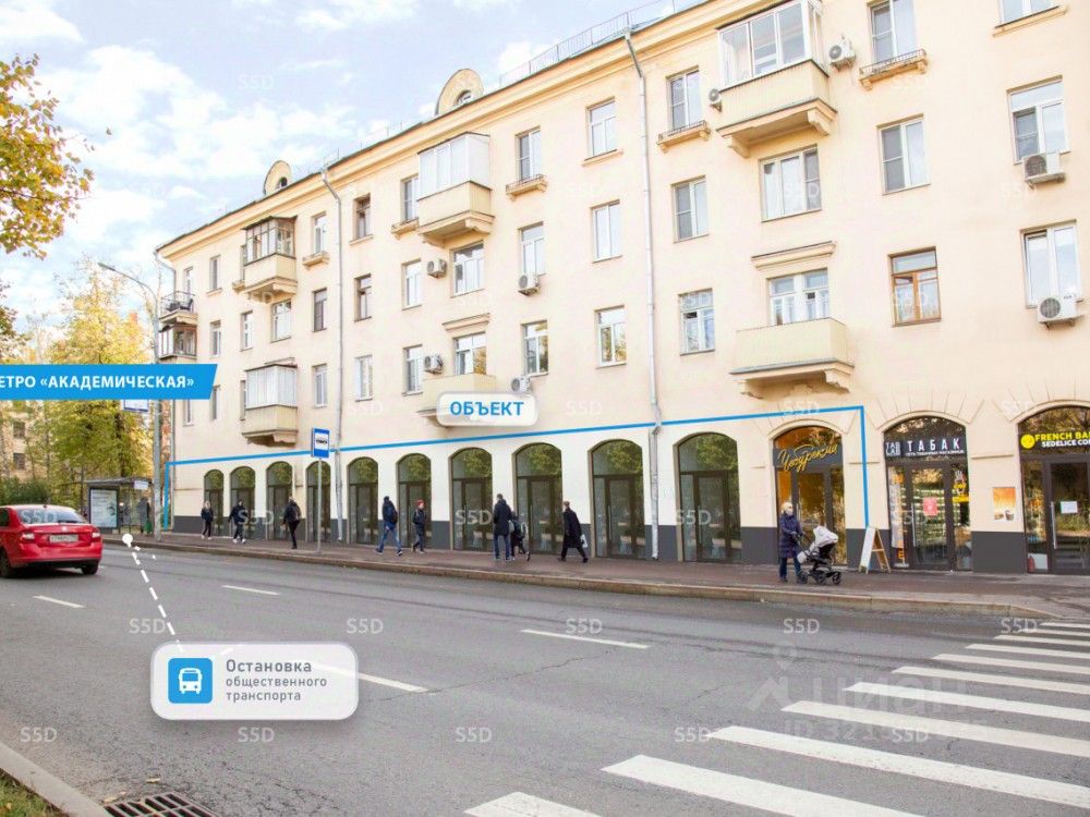 Продажа готового арендного бизнеса по адресу: ул. Дмитрия Ульянова, 10/1к1. Шаговая доступность от ст. метро ''Академическая'' - 5 минут пешком. Отличная пешеходная и транспортная доступность. В непосредственной близости пешеходный переход и остановка общественного транспорта. Высокий рекламный потенциал и места для размещения вывесок. Помещение расположено в крупном сложившемся жилом районе с высокой плотностью застройки и развитой инфраструктурой.