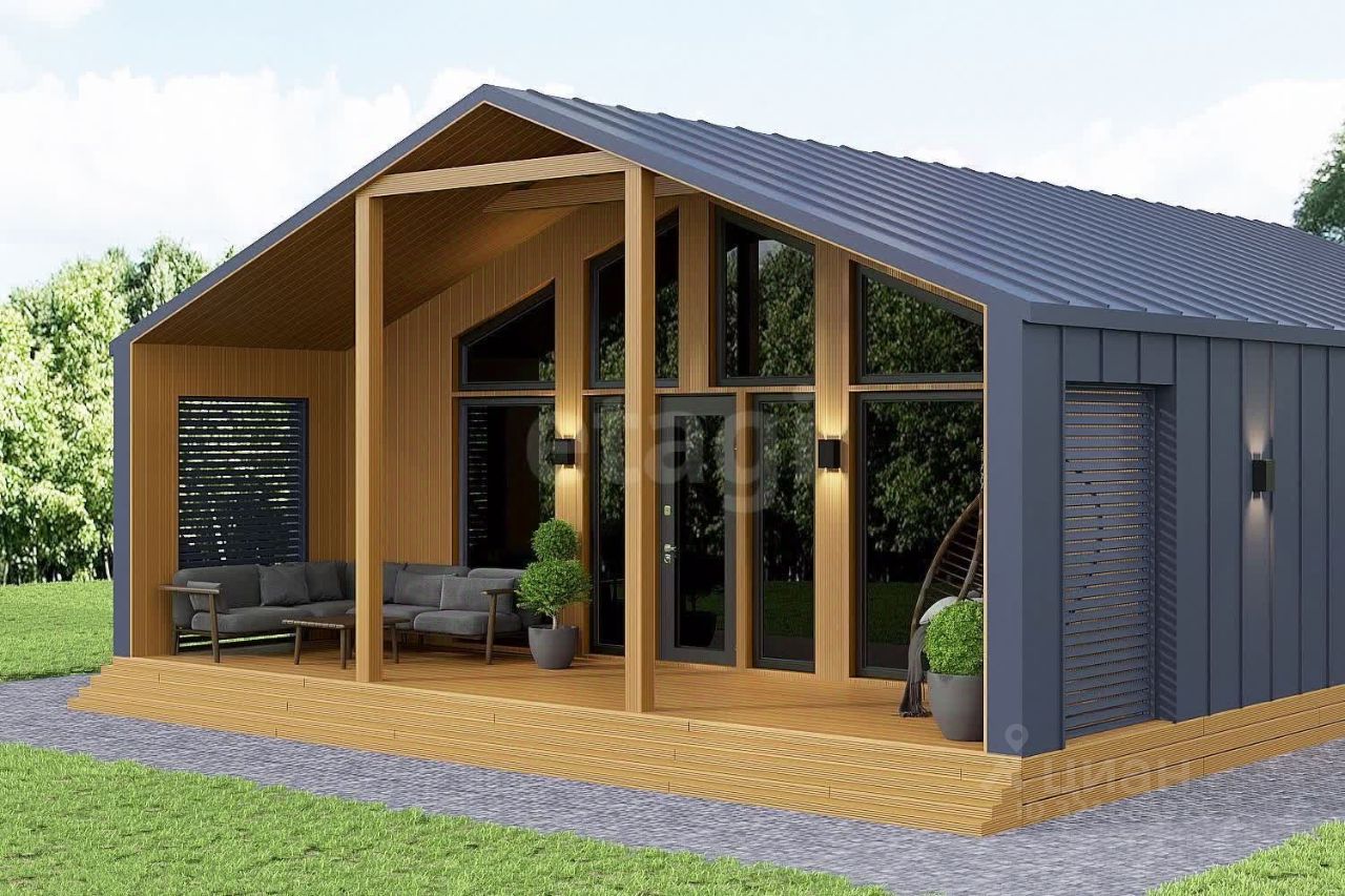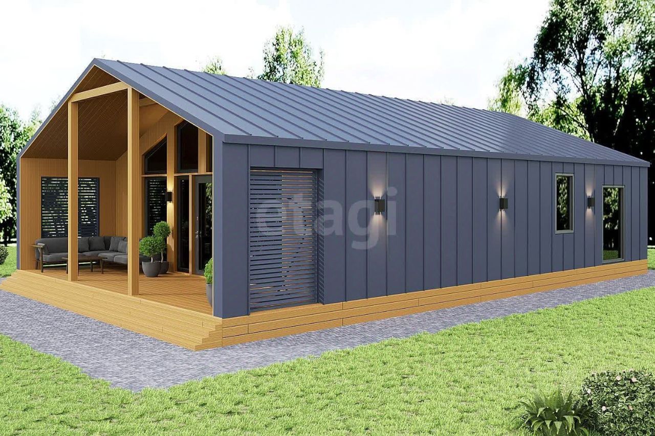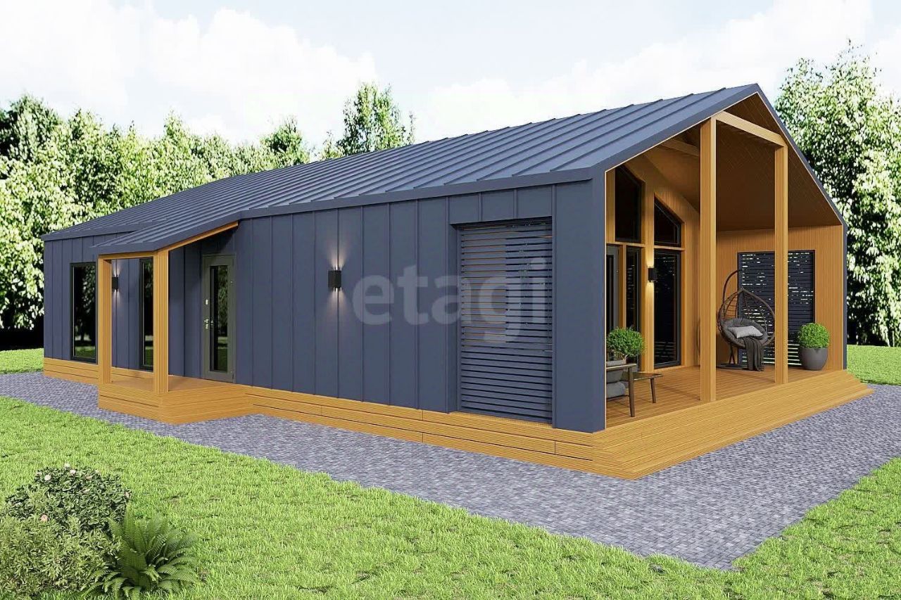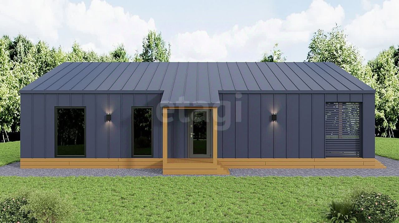 Открытая планировка, пространство которой объединяет кухню и гостиную площадью 33.3 м² с прямым выходом на просторную террасу 22 м². В изолированном крыле дома расположена мастер-спальня 17 м² с собственной ванной комнатой 6 м². Дополнительно предусмотрены две спальни 12 м² и 8 м², а также общий санузел 5 м².
