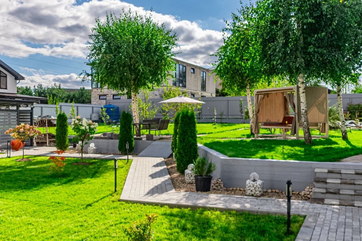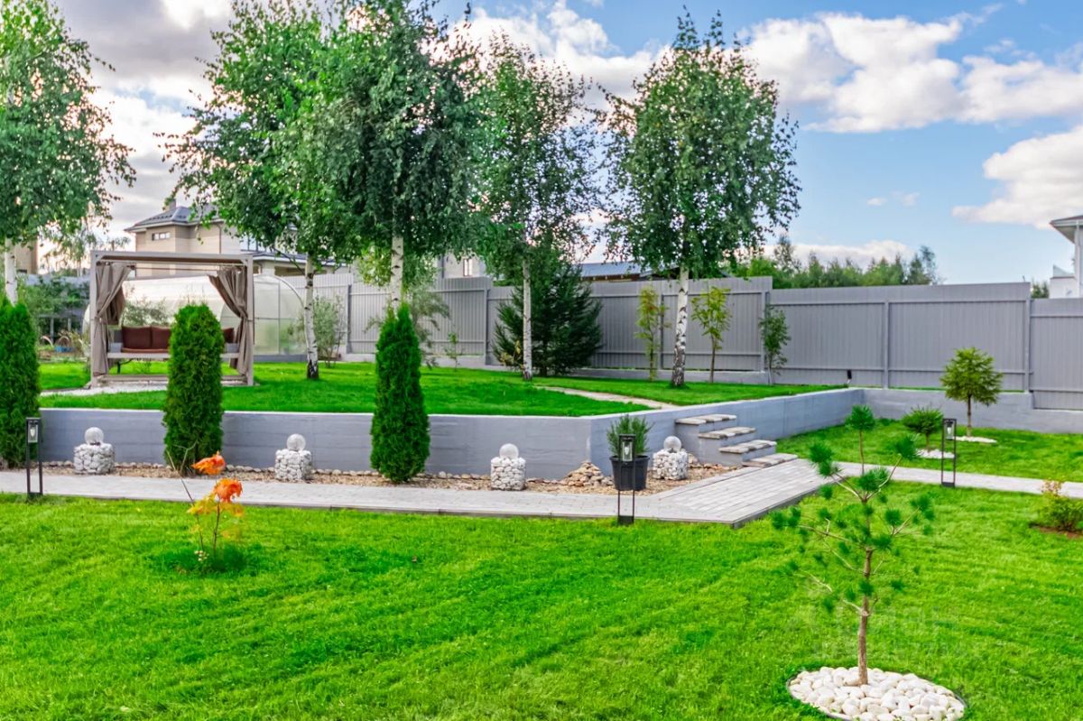 На участке растут хвойные деревья и плодовые растения: вишня, яблоки, черешня, слива, груша, голубика, малина, клубника, ежевика, черноплодная рябина, облепиха и шарафуга. Имеется теплица, двусторонний дренаж с насосом и сбором воды, а также заземление глубиной 15 метров. Для владельцев электромобилей предусмотрена зарядная станция.