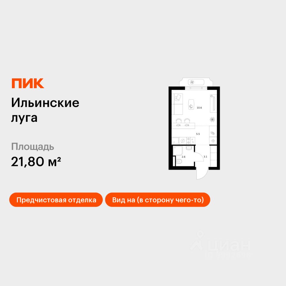 Продаётся квартира-студия площадью 21,8 кв.м на 7 этаже 9 этажного дома (Корпус 3.5, Секция 1) проекта ПИК Ильинские луга. Светлый просторный подъезд на уровне земли, функциональная планировка, большие окна, предчистовая отделка.