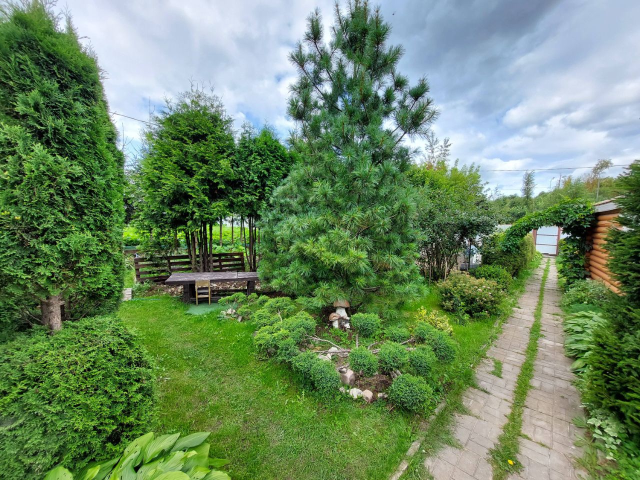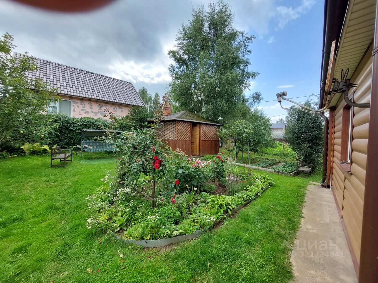 Участок ровный, ухоженный, есть плодовые деревья, кусты. На участке баня и беседка с барбекюшной зоной.