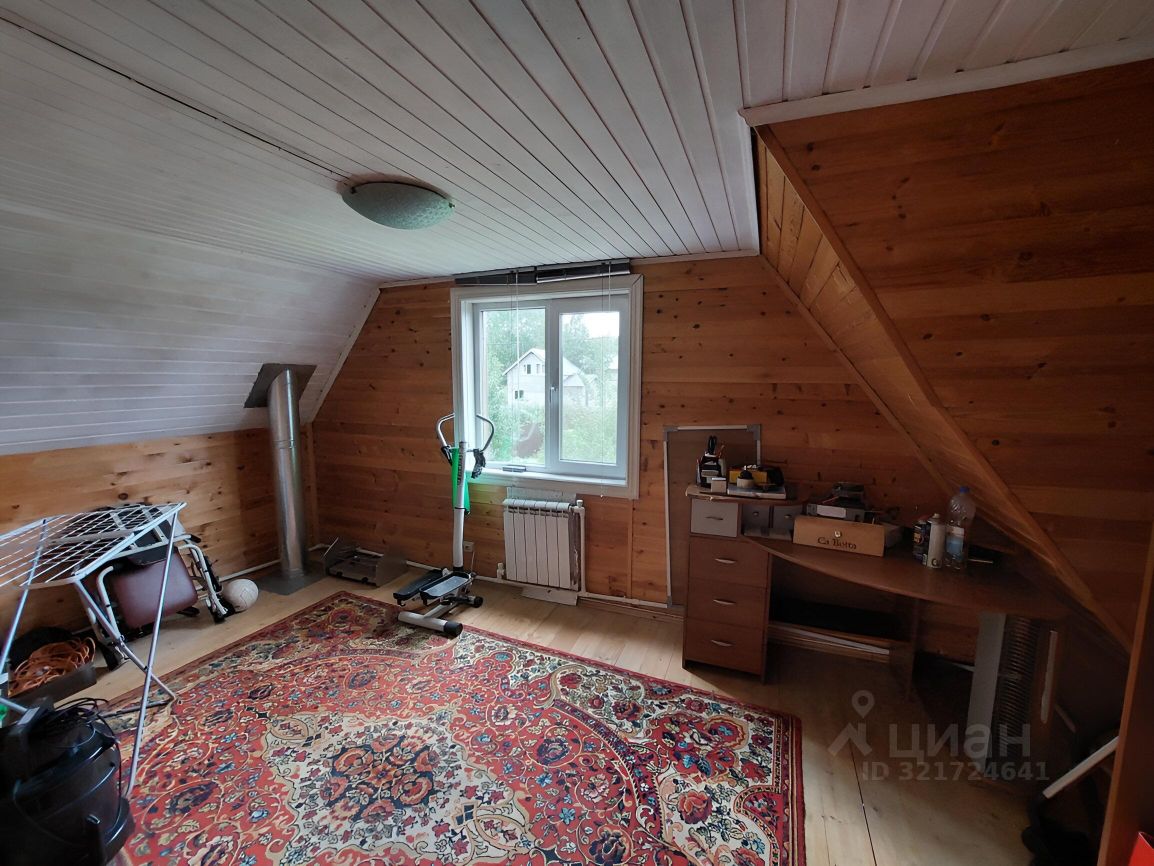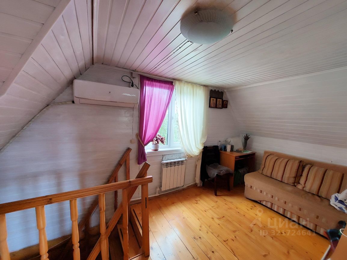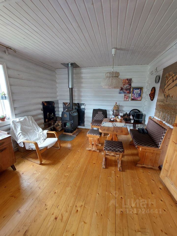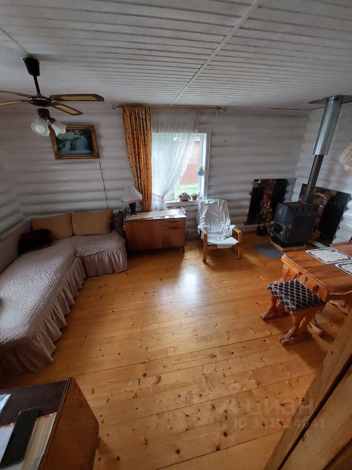 Дом-сруб, отопление электрическое, есть печь-камин, установлен кондиционер. На первом этаже с/у, кладовка, кухня и гостиная. На втором две спальни.
