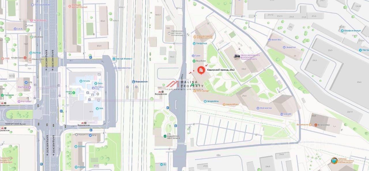 Помещение располагается в окружении сетевых магазинов, в самом центре ЖК ''Life Варшавская'', рядом с метро, рядом остановка общественного транспорта. Интенсивный автомобильный и пешеходный трафик вдоль помещения.
