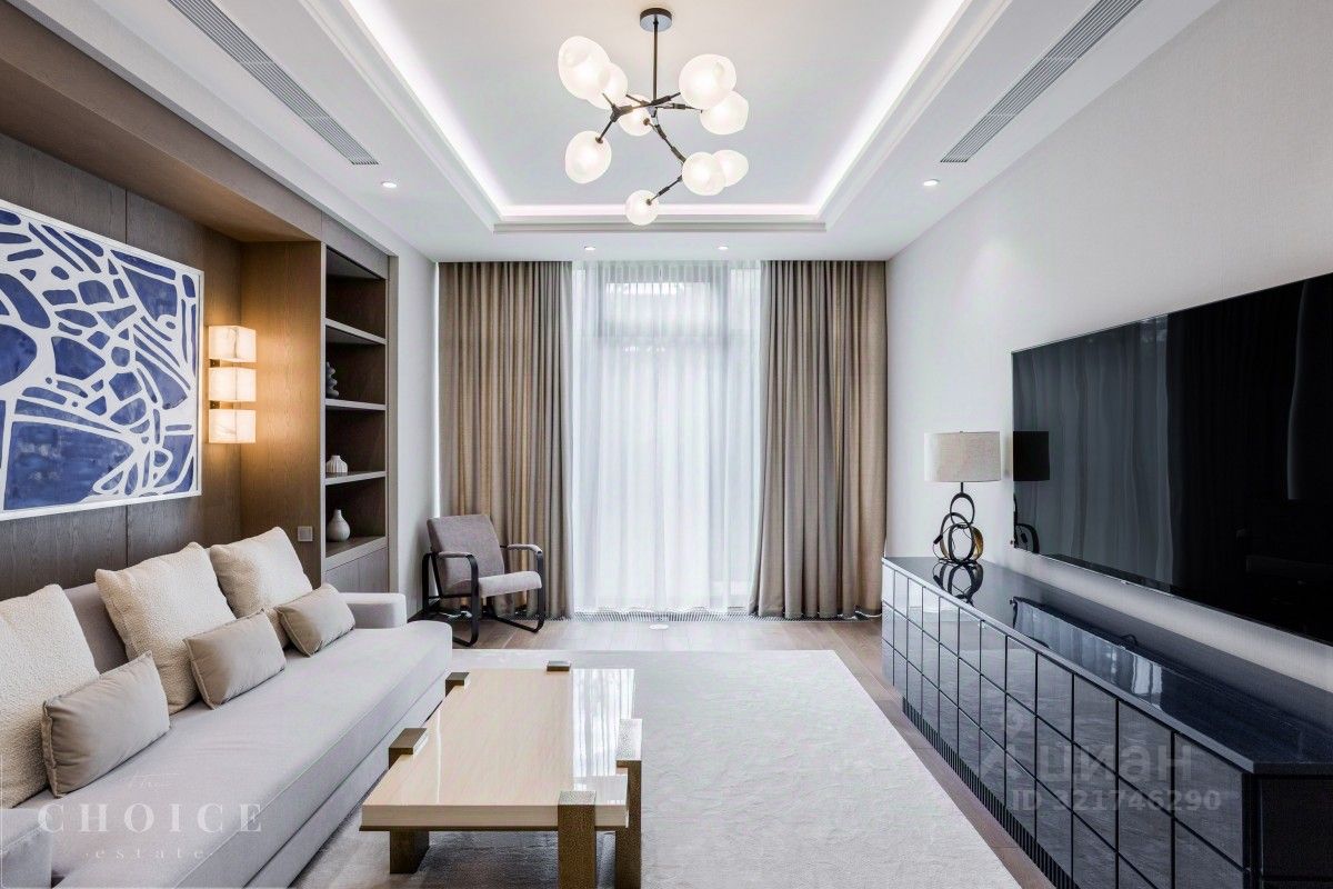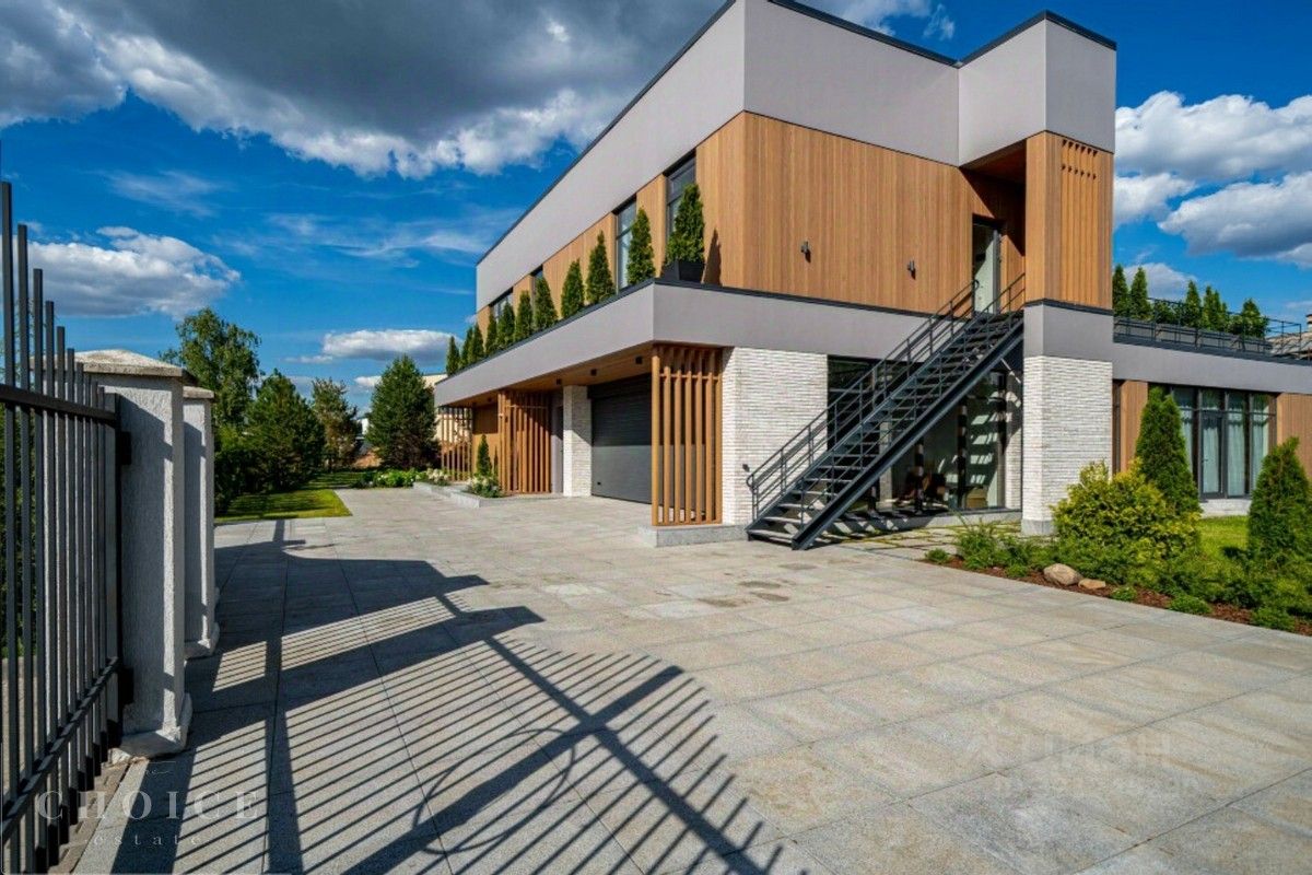 Лот 42945. Современный дом площадью 730 кв.м. на ухоженном участке 23 сотки в живописном коттеджном поселке ''Резиденции Березки''. 1 этаж: гардеробная - 2шт., холл, Столовая с выходом на террасу, кухня, гостиная, санузел, кабинет, постирочная, котельная, гараж 2 этаж: спальня с гардеробной и санузлом - 4шт., помещение свободного назначения, блок для персонала