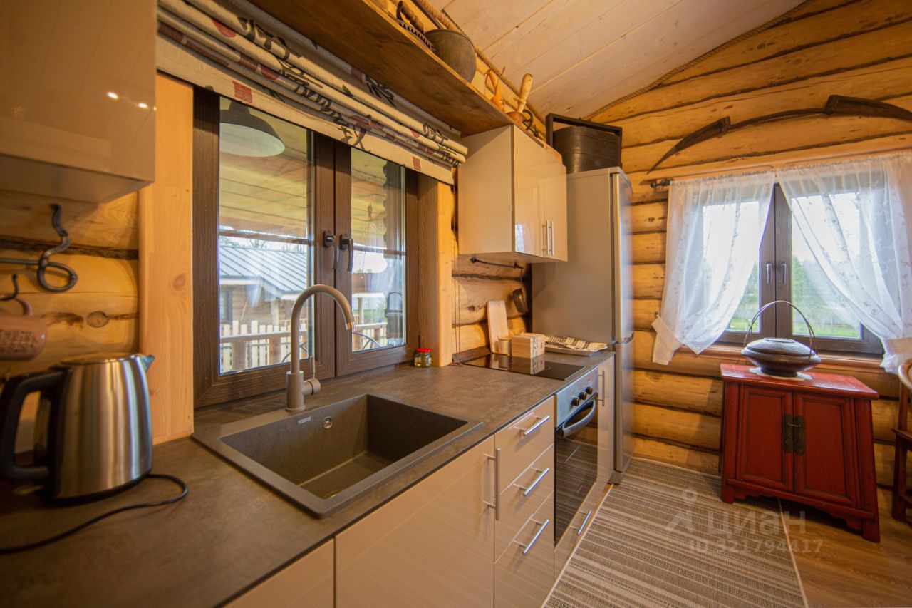 Идеален для 1-2 человек. В доме удобная кухня-гостиная с полным набором современной техники, теплые полы для вашего комфорта, настоящая русская печь (можно и топить и готовить блюда русской кухни!). Обеденный стол, стулья, диван (раскладывается, есть где разместить одного или двух гостей).