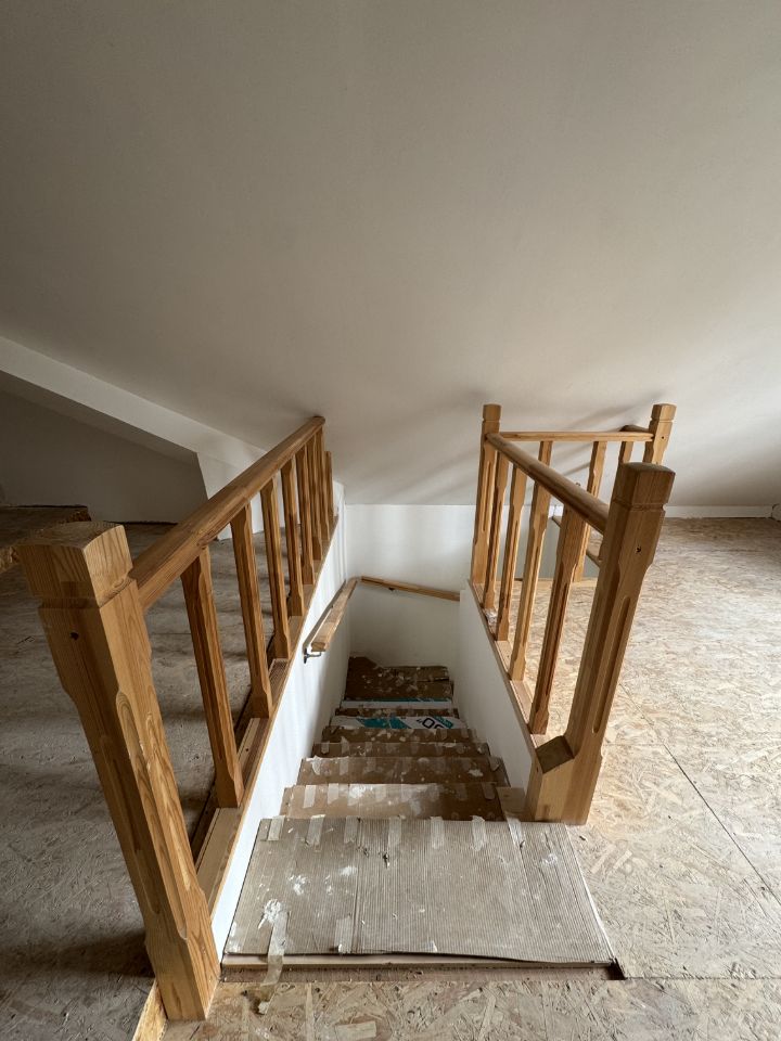 Дом, площадью 89,9 кв.м., основная часть из бревна, пристройка каркасно щитовая, полностью под чистовую отделку! Есть два холодных погреба для хранения! 1 этаж: прихожая, кухня, столовая, две комнаты 15 и 7,2 кв.м., с/у. 2 этаж: комната мансарда 36 кв.м.