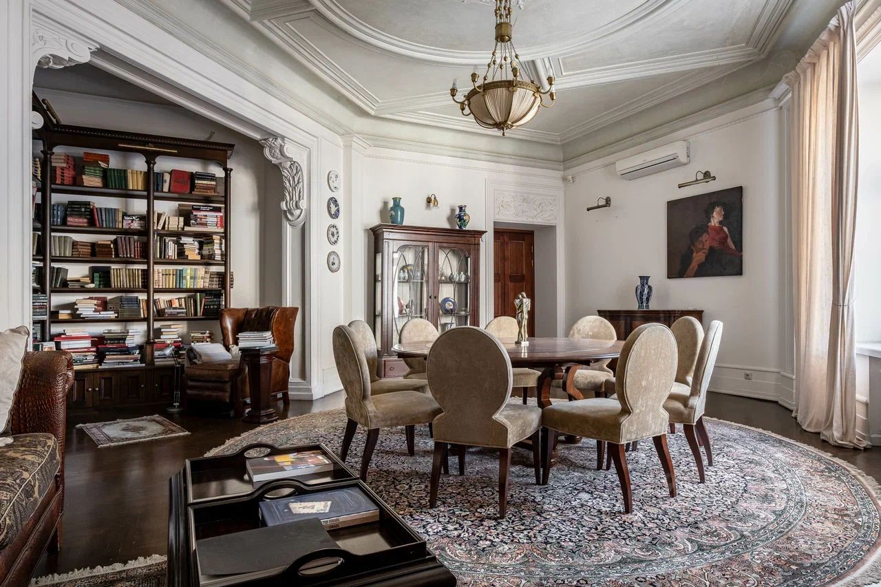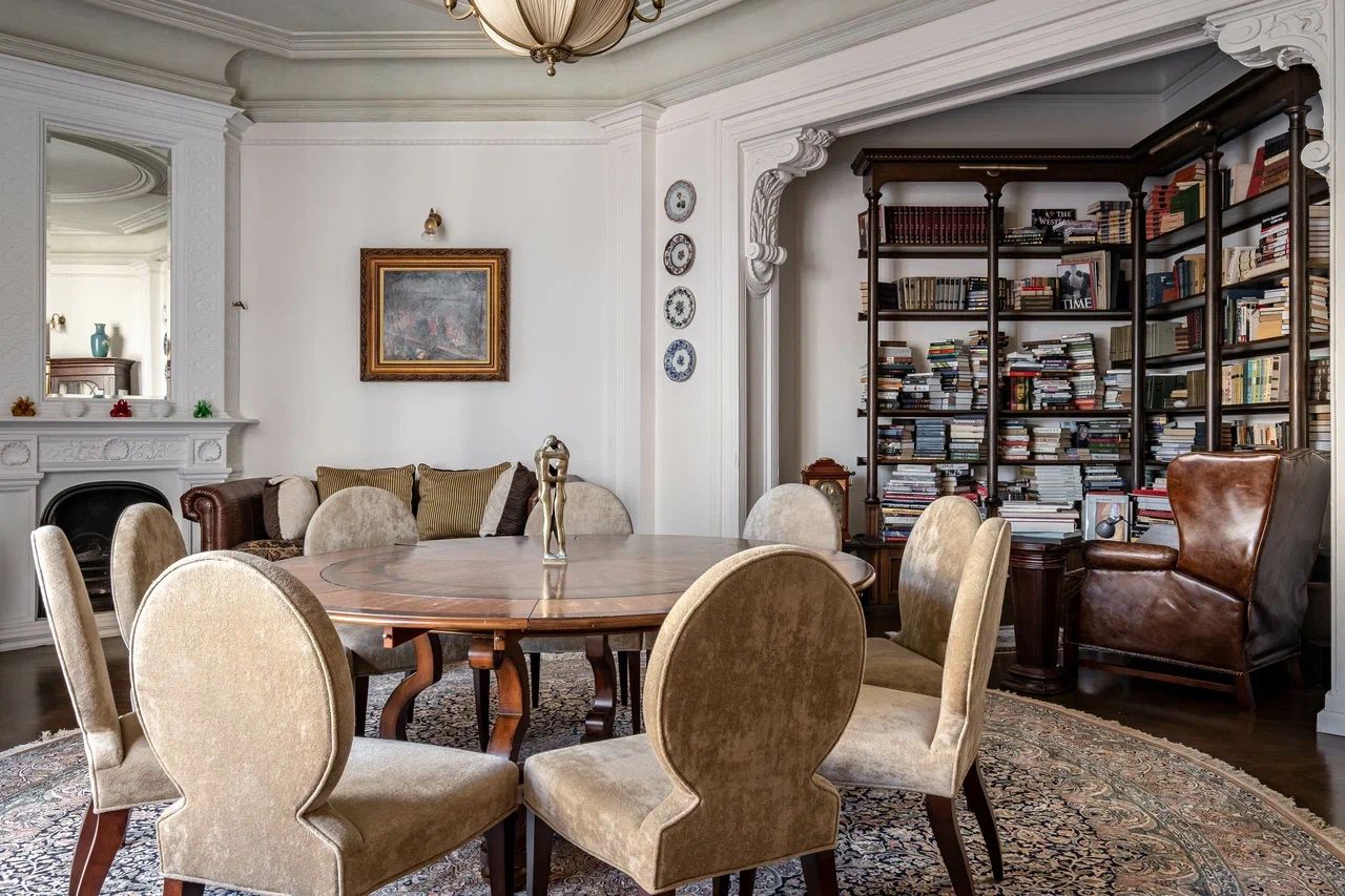 Легкое воздушное пространство квартиры гармонично сочетается с лепниной, мебелью и картинами разных направлений и эпох.