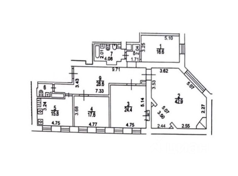 Общая площадь квартиры 160.2 кв.м. В квартире много света, высокие потолки, окна выходят в тихий двор.