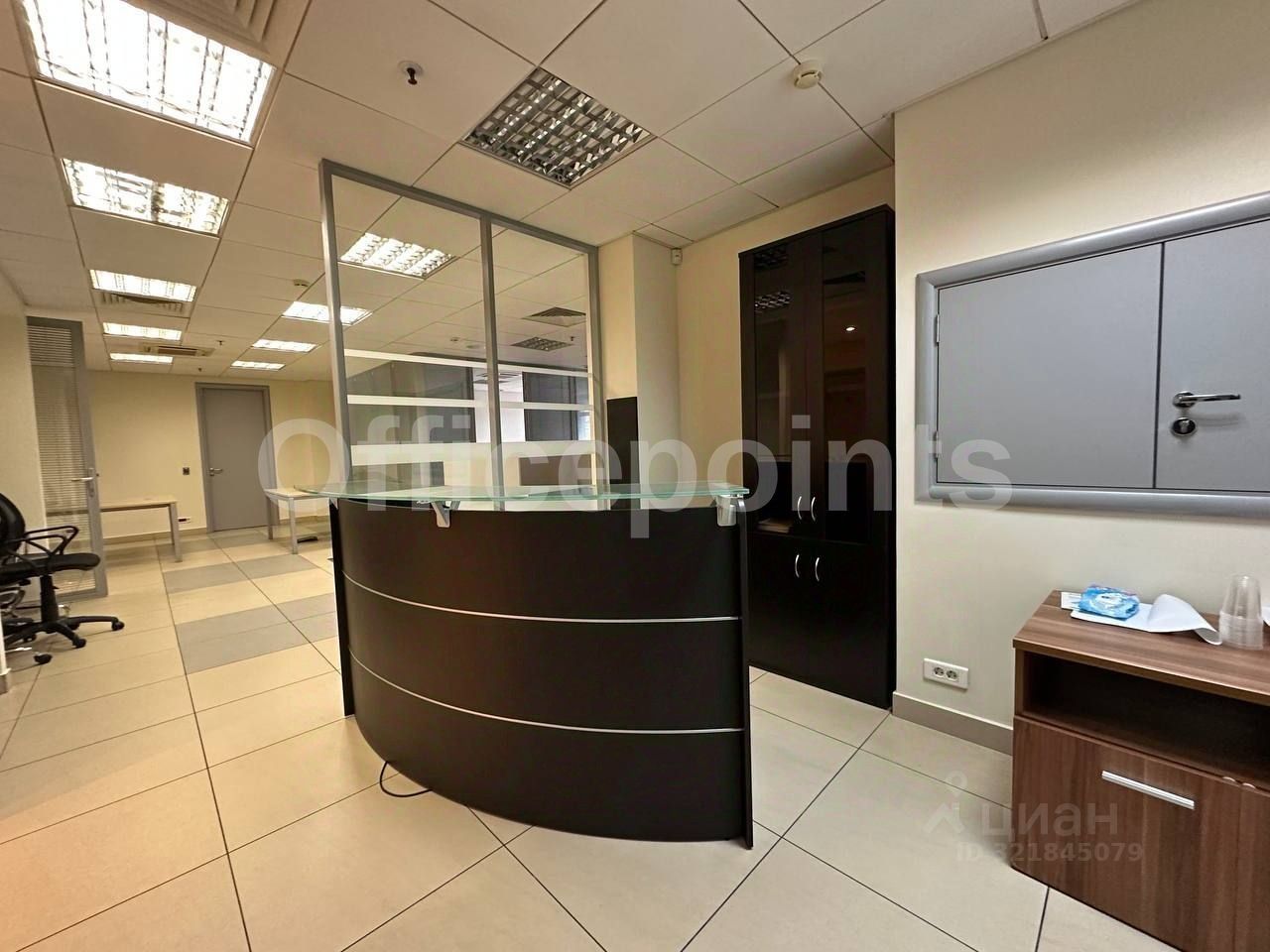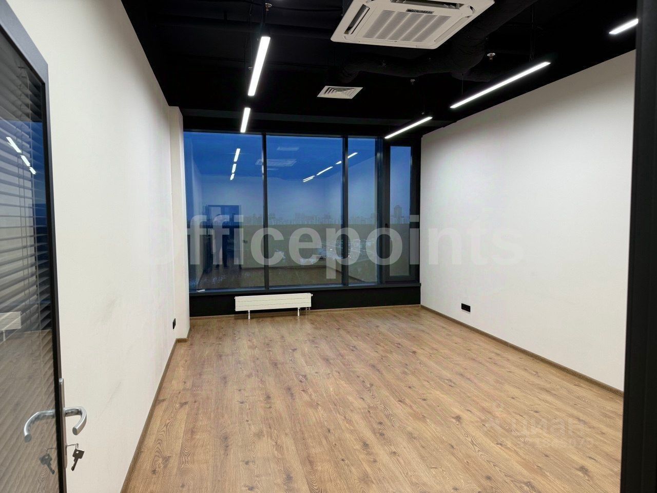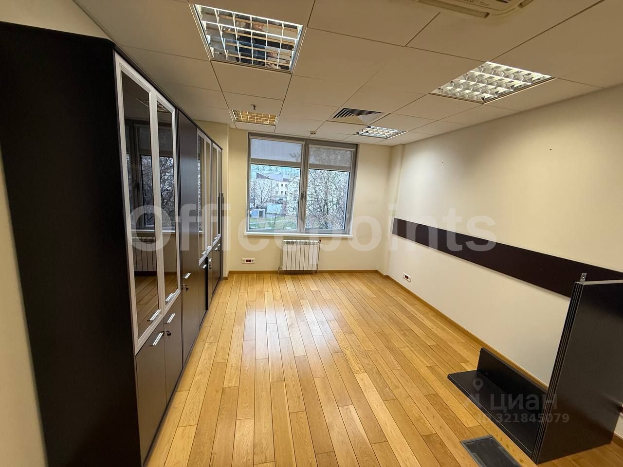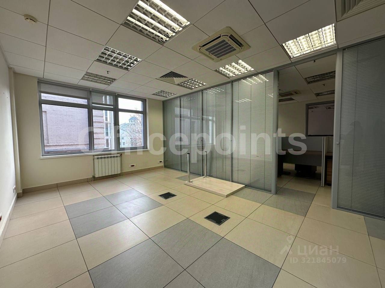 В помещении выполнена офисная отделка, смешанная планировка.