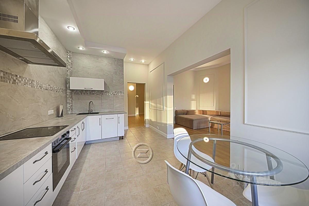 4 этаж. 96 кв.м. Потолки 3,2 метра. Квартира с современным ремонтом, полностью укомплектована мебелью и бытовой техникой. Установлены кондиционеры, посудомоечная машина, бойлер и др. необходимая техника. В квартире тихо, все окна выходят во двор, на Восток.