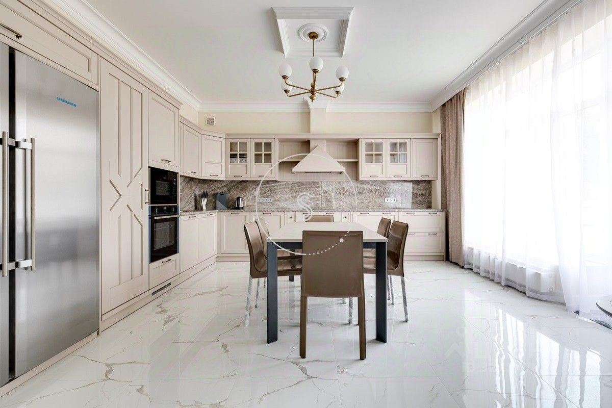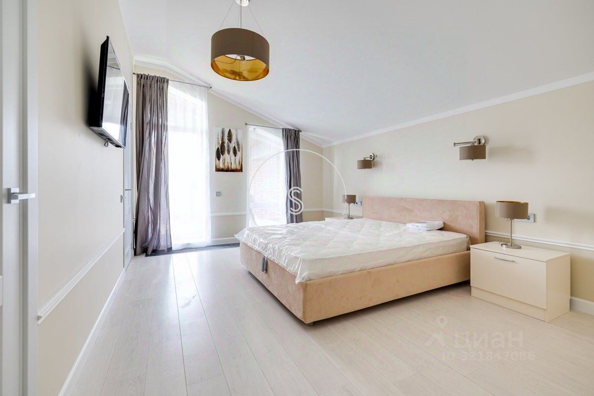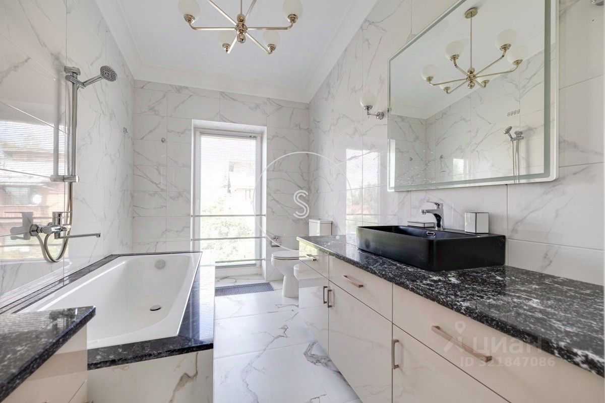 Лот 4241. Коттеджный посёлок расположен в шаговой доступности от реки и парка, в окружении леса. Рядом вся необходимая инфраструктура - детские сады и школы, супермаркеты, фитнес центр с бассейном, рестораны, и прочее. Предлагается просторный дом с современной дизайнерской отделкой, полностью укомплектованный мебелью и бытовой техникой. Свежий ремонт. Планировка: на 1 этаже холл с системой хранения, кухня совмещенная с гостиной, выход на террасу и участок, кабинет, санузел, постирочная. На 2 этаже - 4 спальни (две из них со своим санузлом и гардеробной), выход большой балкон, 3 санузла, системы хранения. Кондиционирование. На участке 12 соток выполнен ландшафтный дизайн, есть гараж на 2 машино-места.