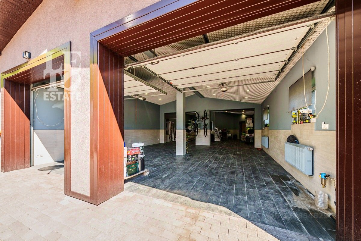 На земельном участке (18 соток) выполнен ландшафтный дизайн с посажеными горными соснами. Есть свой выход в лес и водоему. На кровле установлены солнечные батареи с подачей дополнительной энергии (6 квт) на первый этаж дома. Теплый гараж на 4 машиноместа.