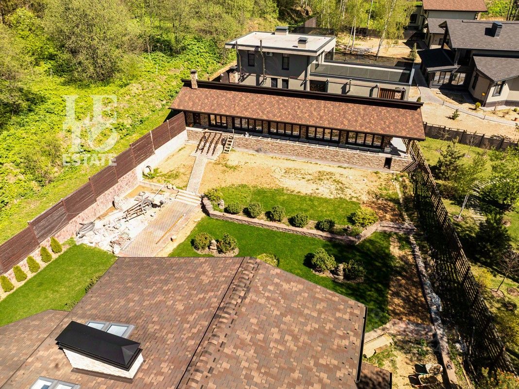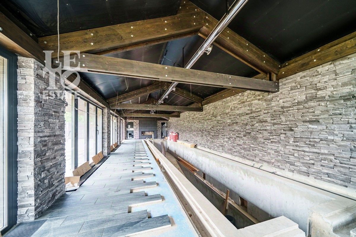 Основной дом в 290 м2 построен из немецких материалов. Внутри дома выполнена качественная отделка, установлена вся необходимая техника Neff и Wiessmann. Подключены все коммуникации (газ, свет, вода, канализация). На первом этаже камин, второй свет. Полы - керамогранит с подогревом по всему этажу. На втором этаже просторный санузел с джакузи и подогревом пола, дизайнерский свет по индивидуальному проекту. Отдельно от основного дома возведена своя спа-зона в 187 м2, с сауной, бассейном с противотоком, лаундж зоной и санузлом. Сауна отделана лиственницей, с дровяной печью (топочная с отдельным входом), раздвижные панорамные окна для использования в летнее время. Чаша бассейна - 2.5 х 15 метров, с заглублением до 3.5 метров. Бассейн готов частично, но все материалы закуплены.