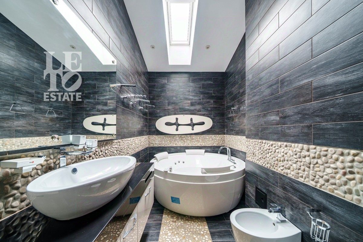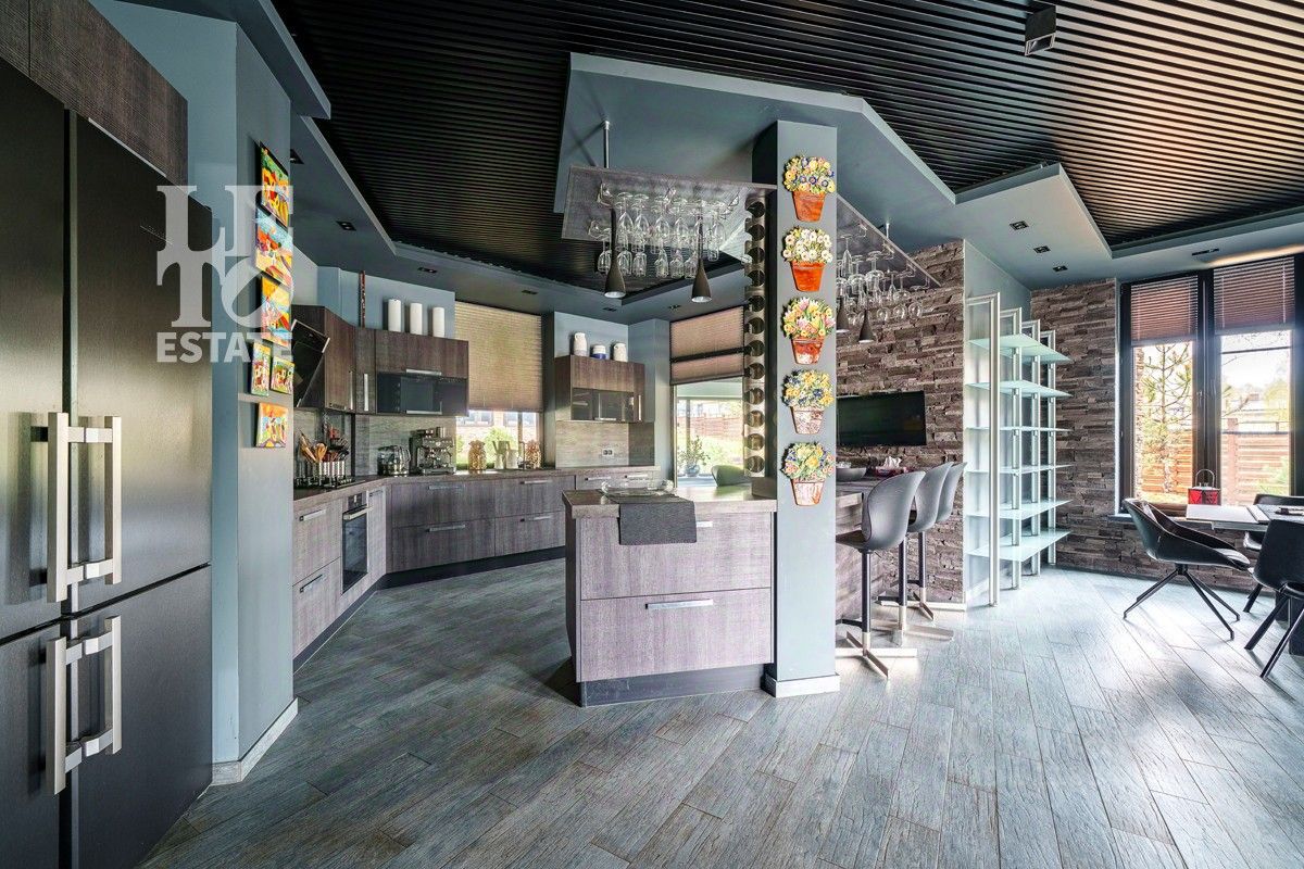 Основной дом в 290 м2 построен из немецких материалов. Внутри дома выполнена качественная отделка, установлена вся необходимая техника Neff и Wiessmann. Подключены все коммуникации (газ, свет, вода, канализация). На первом этаже камин, второй свет. Полы - керамогранит с подогревом по всему этажу. На втором этаже просторный санузел с джакузи и подогревом пола, дизайнерский свет по индивидуальному проекту. Отдельно от основного дома возведена своя спа-зона в 187 м2, с сауной, бассейном с противотоком, лаундж зоной и санузлом.