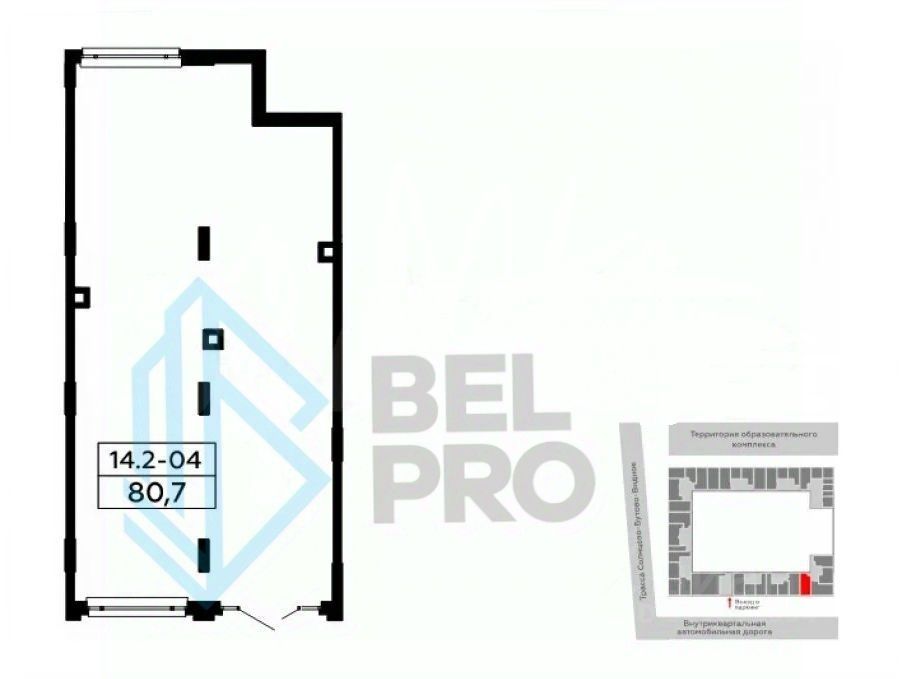 Помещение ровной формы с выходом на первую линию внутреннего проезда в ЖК. Первый вход от угла, витрины во двор и на улицу. Проходимость: от 200 до 489 чел./час (*прогноз по данным ''Геоаналитика BestPlace'')