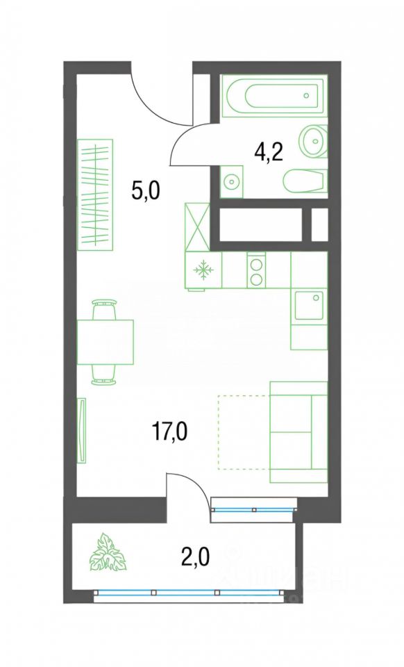 Просторная квартира-студия 28,1 м² в современном доме с лифтом и чистым подъездом. Полностью готова для комфортного проживания: качественный ремонт, функциональная планировка, застеклённая лоджия (2 м²).