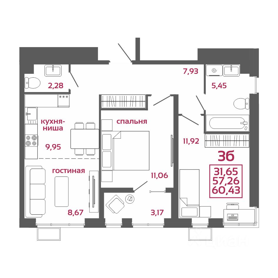 Общая площадь60,43 м2
