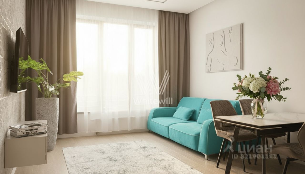 Квартира с двумя спальнями общей площадью 66 м² в комплексе бизнес-класса West Garden, расположенном у долины реки Раменка на западе Москвы.