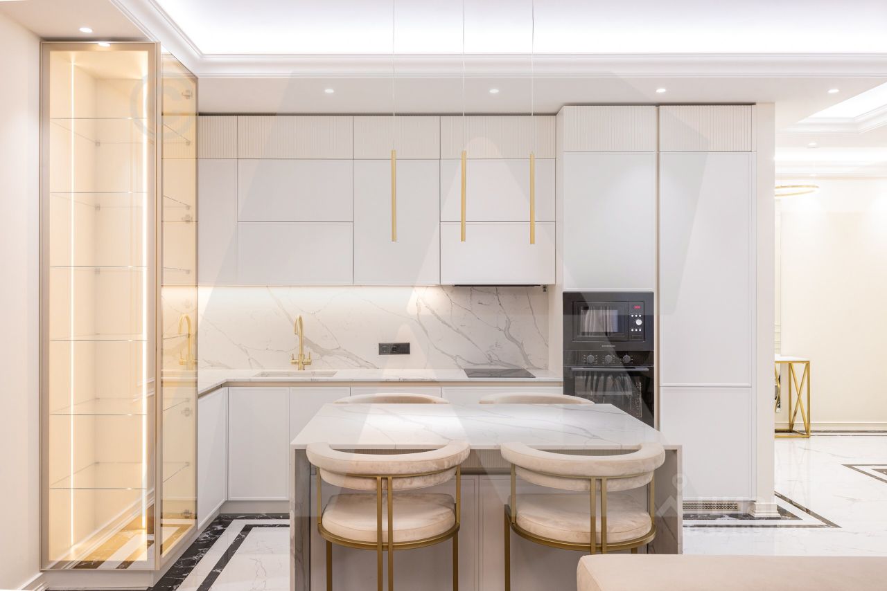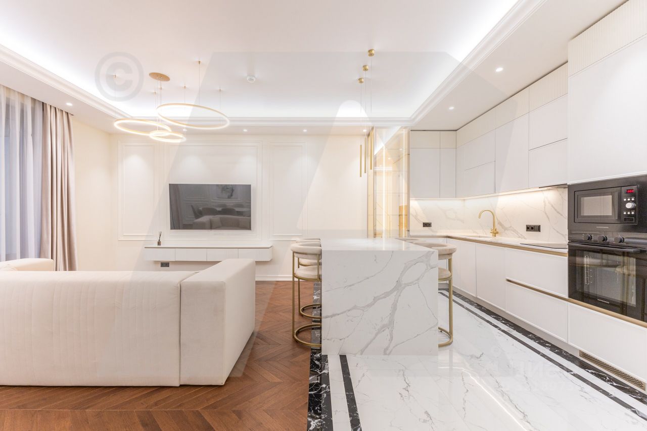 Планировка квартиры: просторная кухня-гостиная с уютным балконом, изолированная спальня с гардеробной и просторный санузел с душевой кабиной и постирочной зоной. В квартире новый качественный ремонт с использованием премиальных материалов: покрытие натурального мрамора, паркет из дуба на полу. Квартира полностью укомплектована мебелью и техникой марок Kuppersberg, Samsung. Вид из окон на благоустроенную территорию комплекса.