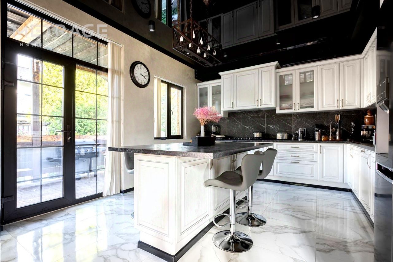 Ключевые характеристики: Площадь и планировка: 7 комнат и 5 санузлов Этажность: 3 этажа Особенности планировки: 7 просторных комнат с собственной гардеробной комнатой и санузлом. Здесь есть место для всей семьи. Отдельный кабинет для работы, который не пересекается с зоной отдыха. И главный бонус - комната для гувернантки. Потому что ваше время слишком ценно для быта. Коммуникация и отделка: Вас ждёт только лучшее - техника премиум - класса от ведущих брендов (Samsung, Electrolux, Bosch, Kuppersberg, LG, Cersanit), система удаленного управления котлом Zont. Всё готово для проживания. Отдых: Собственная терраса для отдыха на свежем воздухе.