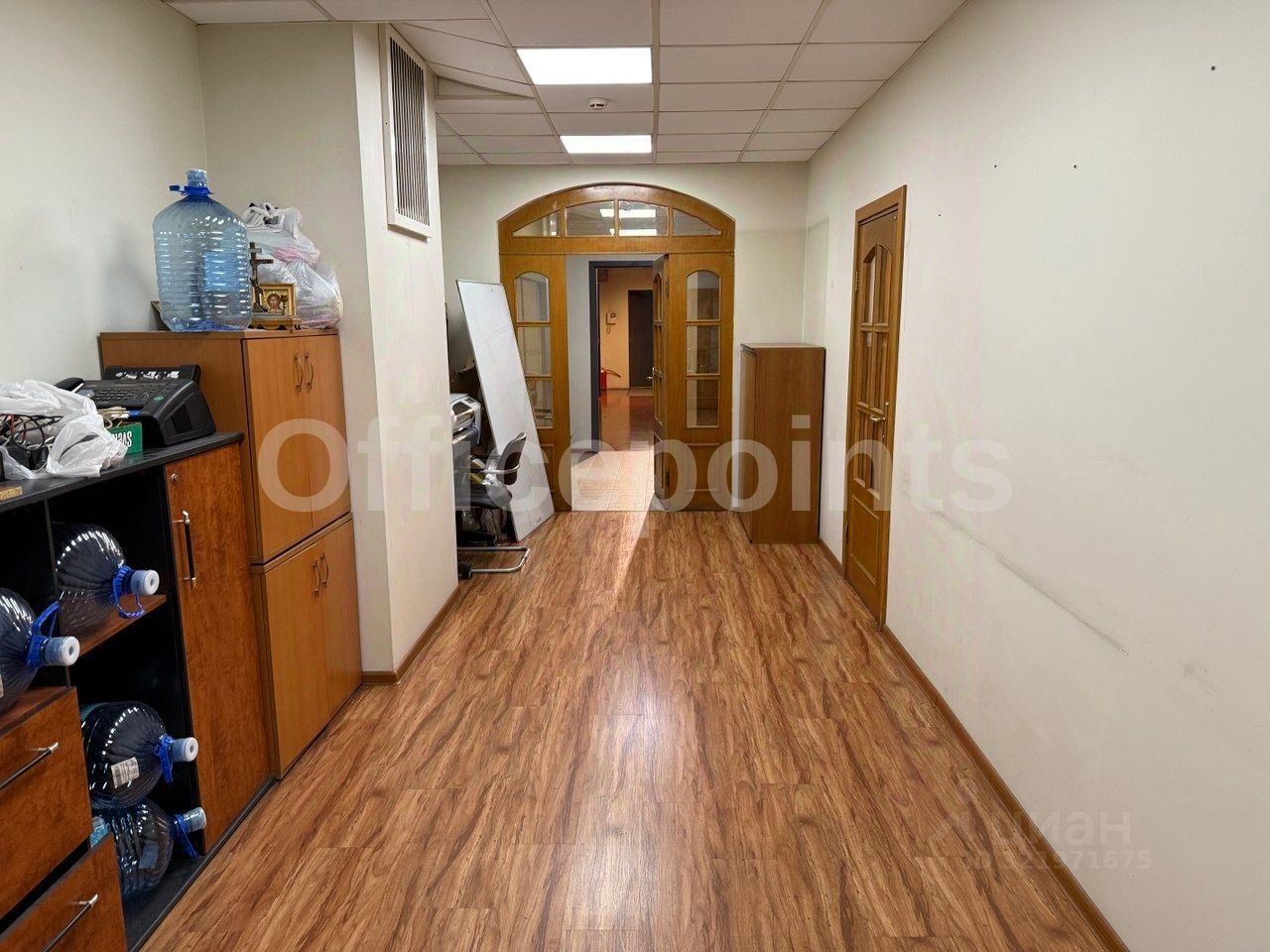 В помещении стандартная офисная отделка, кабинетная планировка (офис рассчитан на 30 рабочих мест). Центральная система кондиционирования и приточно-вытяжная система вентиляции. В наличии наземная парковка.