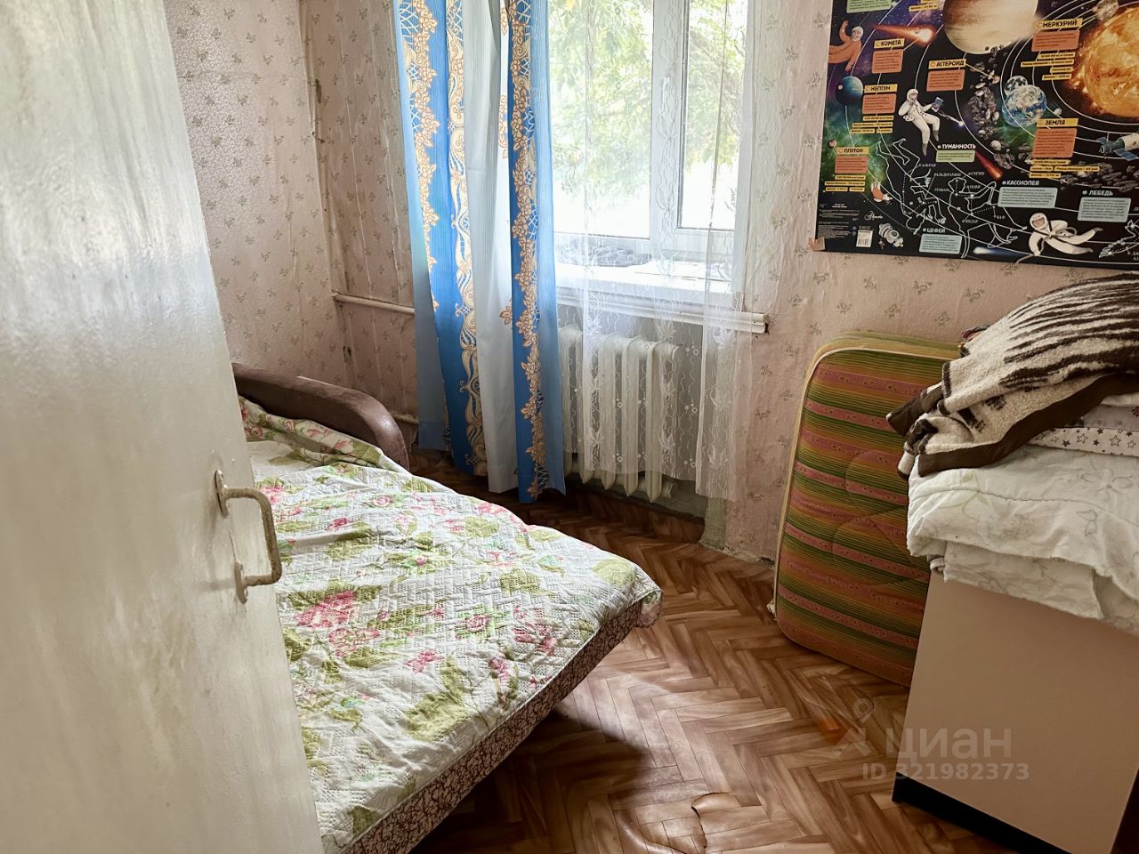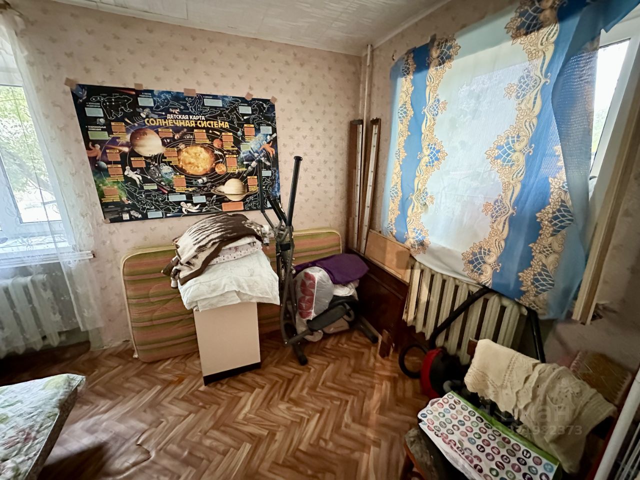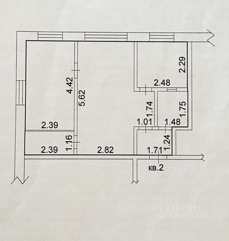 Общая площадь 41,4 кв. м., комнаты смежные площадью 16 кв. м. и 10,5 кв. м., кухня 6 кв. м., есть кладовка. Состояние квартиры среднее, требует косметического ремонта, сан узел совмещенный. Окна выходят во двор. 1-й этаж 4-х этажного кирпичного дома, квартира не угловая.