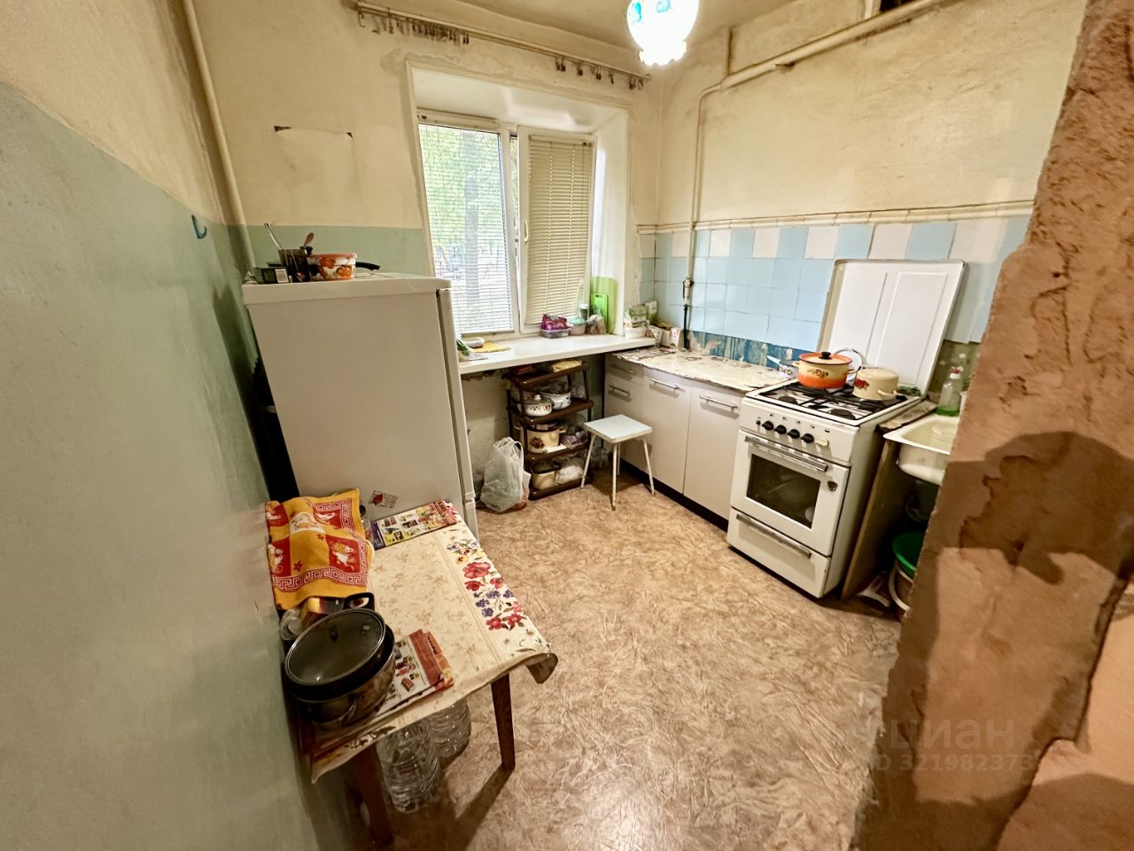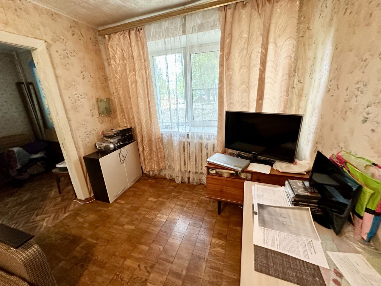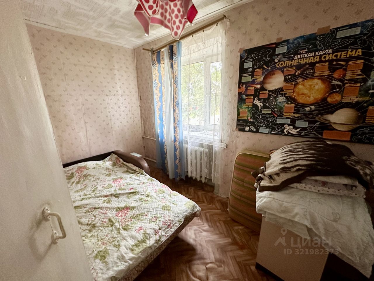 Общая площадь 41,4 кв. м., комнаты смежные площадью 16 кв. м. и 10,5 кв. м., кухня 6 кв. м., есть кладовка. Состояние квартиры среднее, требует косметического ремонта, сан узел совмещенный. Окна выходят во двор. 1-й этаж 4-х этажного кирпичного дома, квартира не угловая.