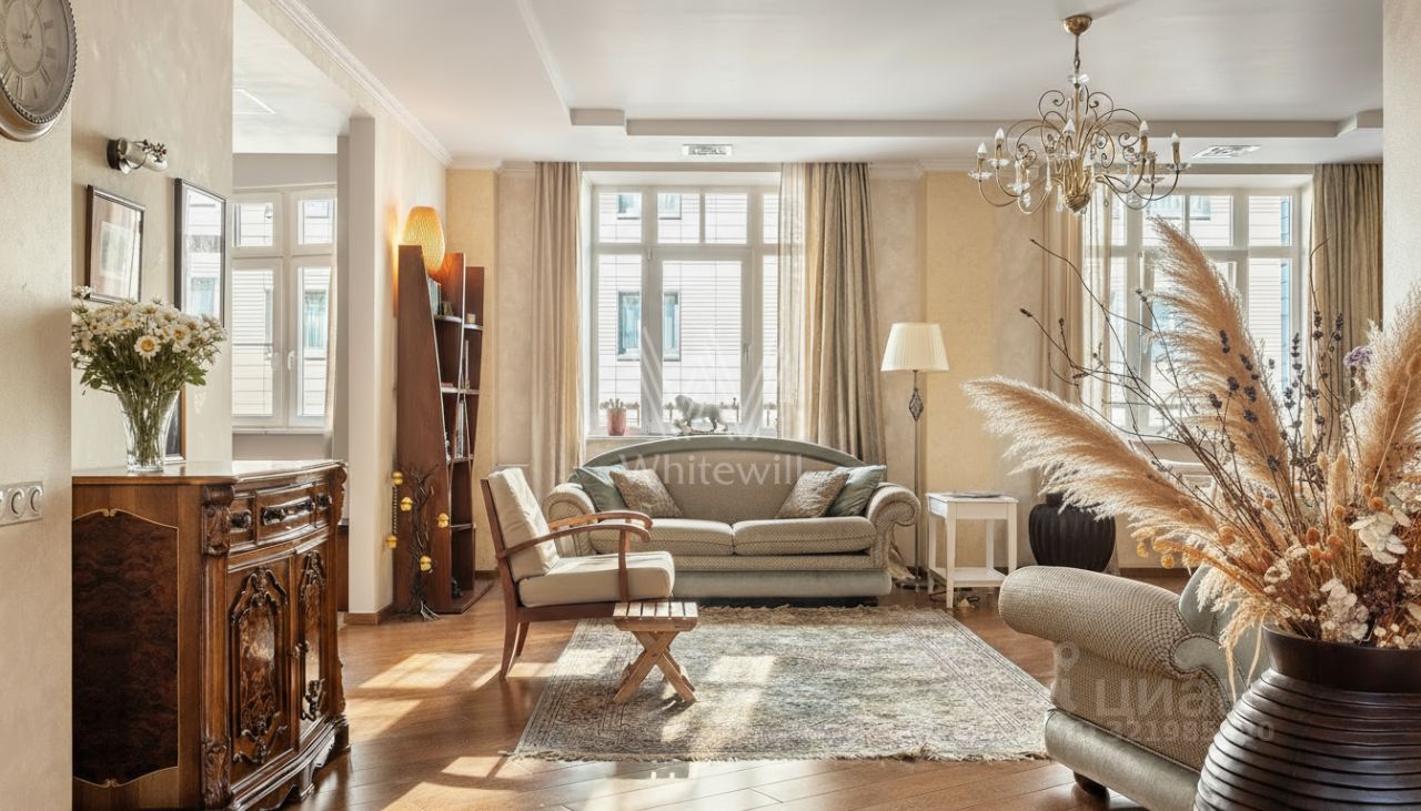 Просторная квартира с двумя спальнями общей площадью 150 м² в комплексе бизнес-класса ''Бахрушина, 13'' на 5-м этаже. Выполнена дизайнерская отделка в классическом стиле в светлых тонах. Спланирована гостиная-столовая, кухня с обеденной зоной, две спальни, ванная комната, два санузла, прихожая. Квартира полностью меблирована и оборудована бытовой техникой. Вывоз мебели обсуждается. Установлены сплит-система и подогрев полов. Из окон открывается вид в тихий двор. В стоимость входит машино-место в подземном паркинге у лифта.