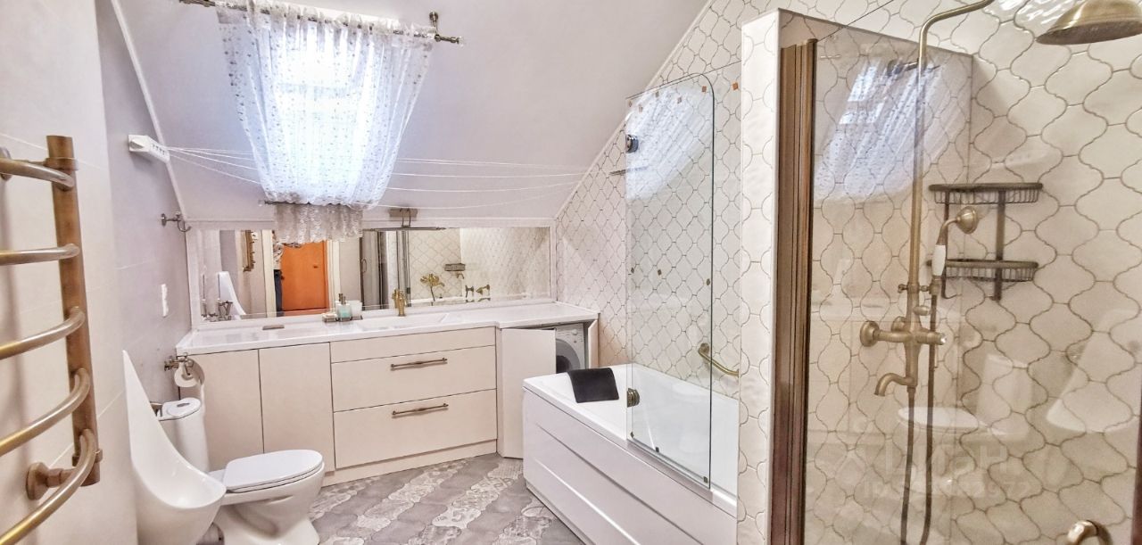Ремонт в классическом стиле выполнен из качественных натуральных материалов премиум-класса: лестница - массив дуба. Полы - керамогранит.