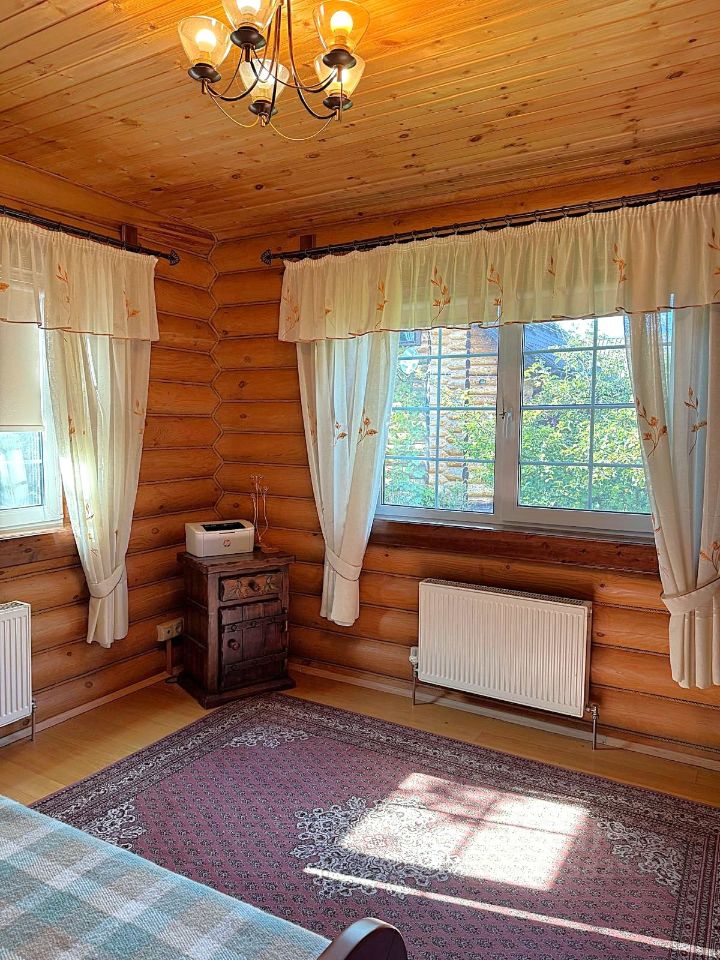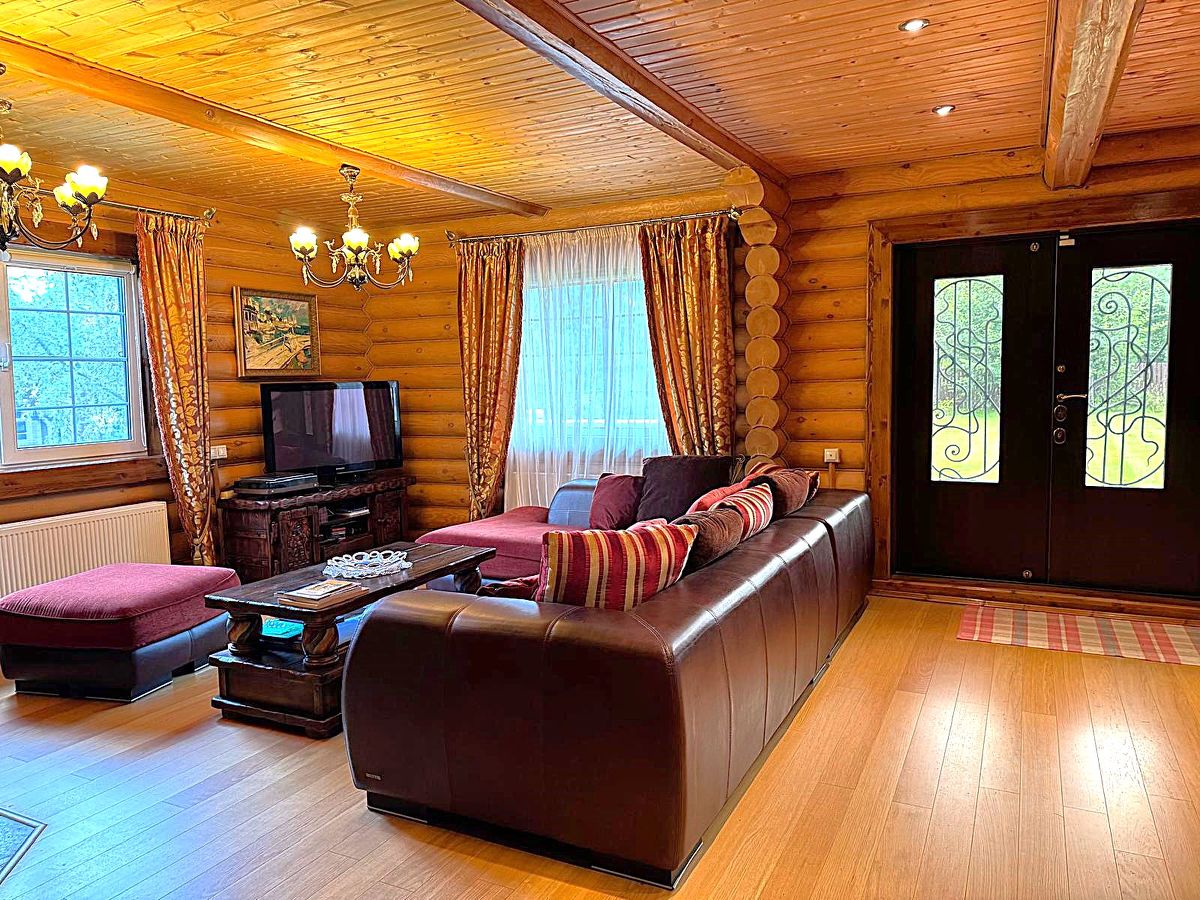 Лучшее предложение в коттеджном поселке, на берегу Можайского водохранилища! В продаже 3 великолепных бревенчатых строения из Архангельской сосны, на красивом участке 20 соток! Дом 185 кв.м, 2 этажа, полностью меблирован, удобная лестница, заходите и живите! Планировка: 1 этаж- прихожая, гостиная с финским камином, кухня с бытовой техникой, спальня, сан.узел с душевой кабиной, бойлерная, веранда, 2 этаж: 3 спальни, сан.узел с ванной, холл-библиотека с балконом. Баня: парная для большой компании, комната отдыха, сан.узел. Гараж 136 кв.м, на 2 машины, с гостевым этажем: холл, сан.узел, просторная комната, есть подводка для кухни, а лестница - художественное произведение. Навес для садовой техники, которая тоже остается Вам! Все строения имеют центральные коммуникации и отопление: магистральный газ, центральный водопровод, центральная канализация, электричество. Участок спланирован, есть прудик с несколькими видами кувшинок, дорожки, садовые и плодовые деревья, альпийская горка, разнообразные растения и цветы. Оригинальная деревянная беседка, зона барбекю, танцпол! Всего 3 минуты, и вы на берегу Можайского водохранилища! Спортивные площадки: волейбол, футбол, настольный теннис, детский городок, пляж, пирс для купания. Причал для лодок. В поселке есть теннисный корт. Прогулочные зоны, места для отдыха. Поселок живет активной жизнью! Платежи 11 000 руб. в месяц.