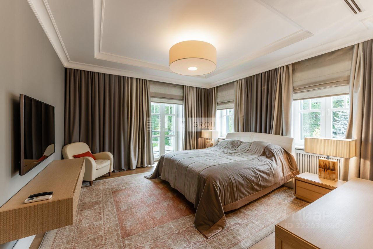 Всего 11 км отделяют этот загородный дом от Москвы, но здесь царит атмосфера настоящего загородного уединения. Расположенная в окружении лесного массива у канала им. Москвы, она предлагает идеальный баланс между транспортной доступностью и приватностью. Архитектура — синтез классики и современности. Кирпичные стены, панорамное остекление и благородные фактуры создают образ дома, который вдохновляет с первого взгляда. Интерьеры отличаются лаконичным дизайном в спокойной палитре, где каждая деталь продумана до мелочей — от индивидуально спроектированной мебели до тщательно подобранных текстур. На территории 2,0 Га создан полноценный парковый ансамбль с искусственными озерами, прогулочными аллеями и взрослыми хвойными посадками. Аромат соснового бора и живописный ландшафт создают особую атмосферу. Также расположены отдельно стоящий гаражный комплекс на 4 м/м с блоком для персонала, гостевой дом и банный комплекс.
