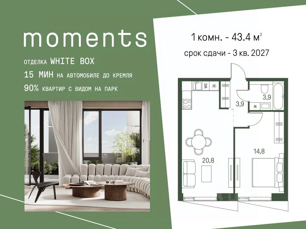 Moments — ЖК бизнес-класса, расположен на расстоянии вытянутой руки от старинного усадебного парка Покровское-Стрешнево. Moments — это единение города и природы, дом, который помогает обрести гармонию и баланс в жизни.