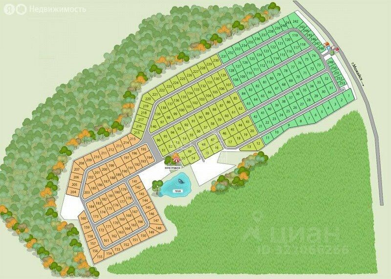 ЛОКАЦИЯ: • 900 метрах от Можайского водохранилища с оборудованными песчаными пляжами. • Рядом есть пруд с запущенными рыбами. • Территория окружена лесом. • К посёлку ведёт асфальтированная подъездная дорога. • Ближайший населённый пункт — деревня Ковалево, расстояние до неё — 300 метров. • 5 км. школа, садик! • Ближайшая железнодорожная станция — Бородино, расстояние до неё — 9 км.