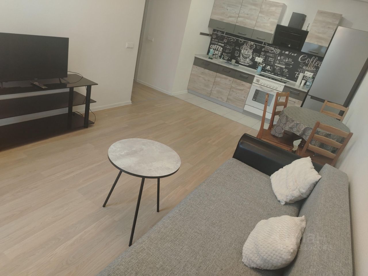 ЖК ''Ясный'' - абсолютно новый уровень жизни. Дом переменной этажности, двор без машин, что позволило создать безопасную и комфортную зону отдыха и для детей, и для взрослых. Огороженная и охраняемая территория. Называется ''евротрешка'': две спальни и большая кухня-столовая. В квартире выполнен евроремонт в светлых тонах: стеклопакеты ПВХ, ламинат, крашеные стены, белые двери. В гостиной: встроенный кухонный гарнитур, вся бытовая техника, диван раскладной, обеденный и журнальный столы, ЖК ТВ. В первой спальне -2-спальная кровать + шкаф, журн..стол и банкетка, во второй - новый шкаф, 1,5 кровать, стол + стулья, стеллаж. В прихожей установлен шкаф-гардероб. Санузлов - два: полноценный и гостевой. Входная сейфовая дверь + тамбур на четыре квартиры.