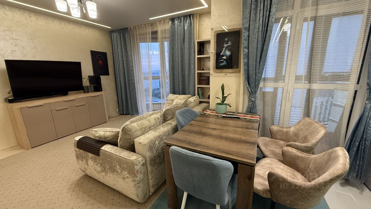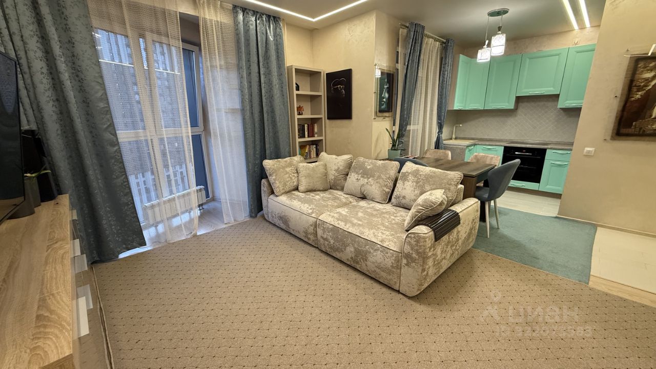 Сдаётся уютная студия площадью 50 кв.м на 13 этаже современного 25-этажного монолитного дома, построенного в 2014 году. Просторная квартира с высокими потолками 2.8 метра и большими окнами, выходящими на улицу, создает ощущение света и простора.