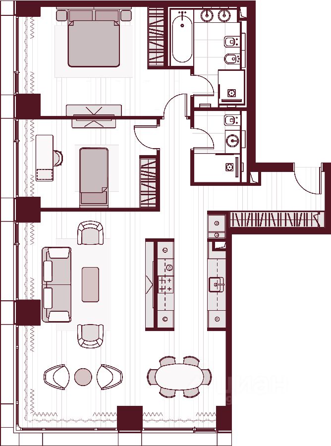 Уникальная квартирография Более 80 вариантов планировочных решений от однокомнатных квартир до двухуровневых дуплексов и пентхаусов. Панорамные окна, высокие потолки, мастер-спальни, балконы и террасы создают особенный комфорт и уют.