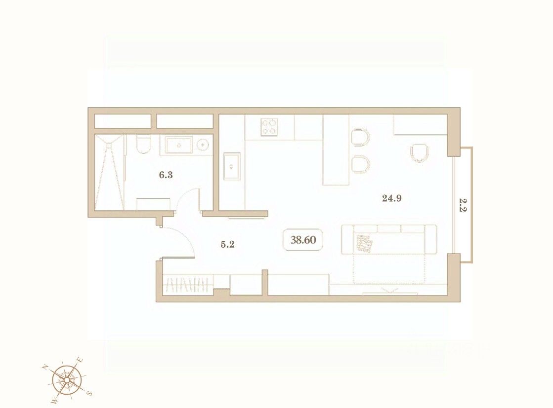 Общая площадь38,6 м2